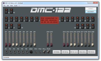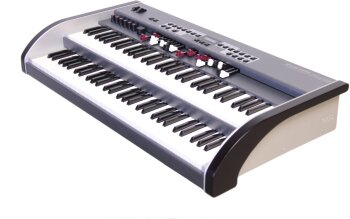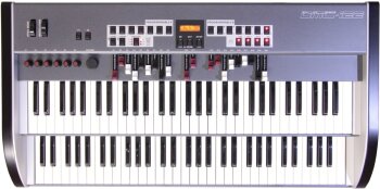 Le DMC-122 Dual Midi Console est un double clavier MIDI de 5 octaves complètes chacun de type Waterfall avec aftertouch, 20 tirettes harmoniques, des molettes de modulation et de pitch bend, 22 boutons, un encodeur rotatif et un bouton Multiple.