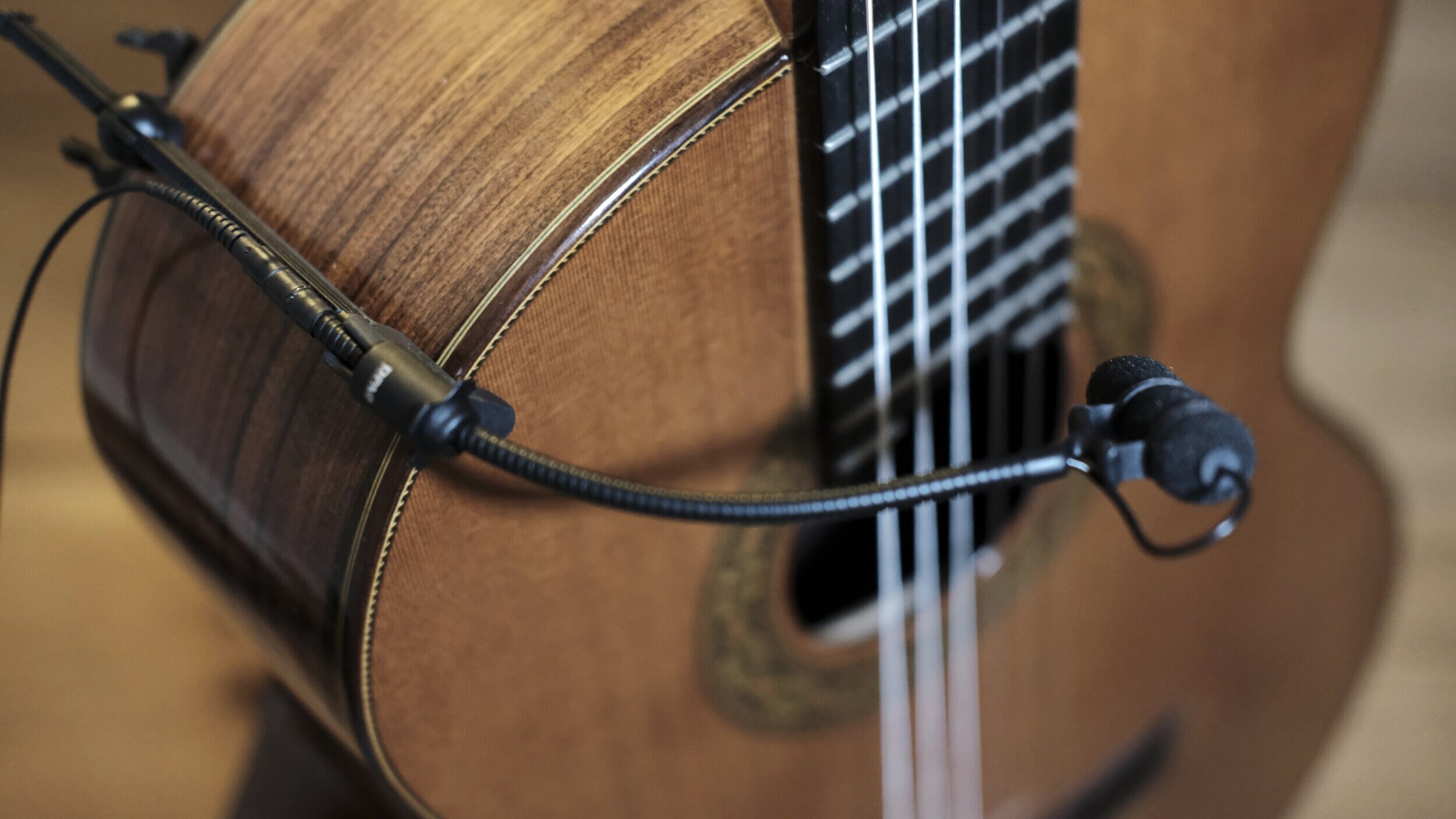 Clip pour connecter un microphone d’instrument DPA 4099 à une guitare acoustique, mandoline,