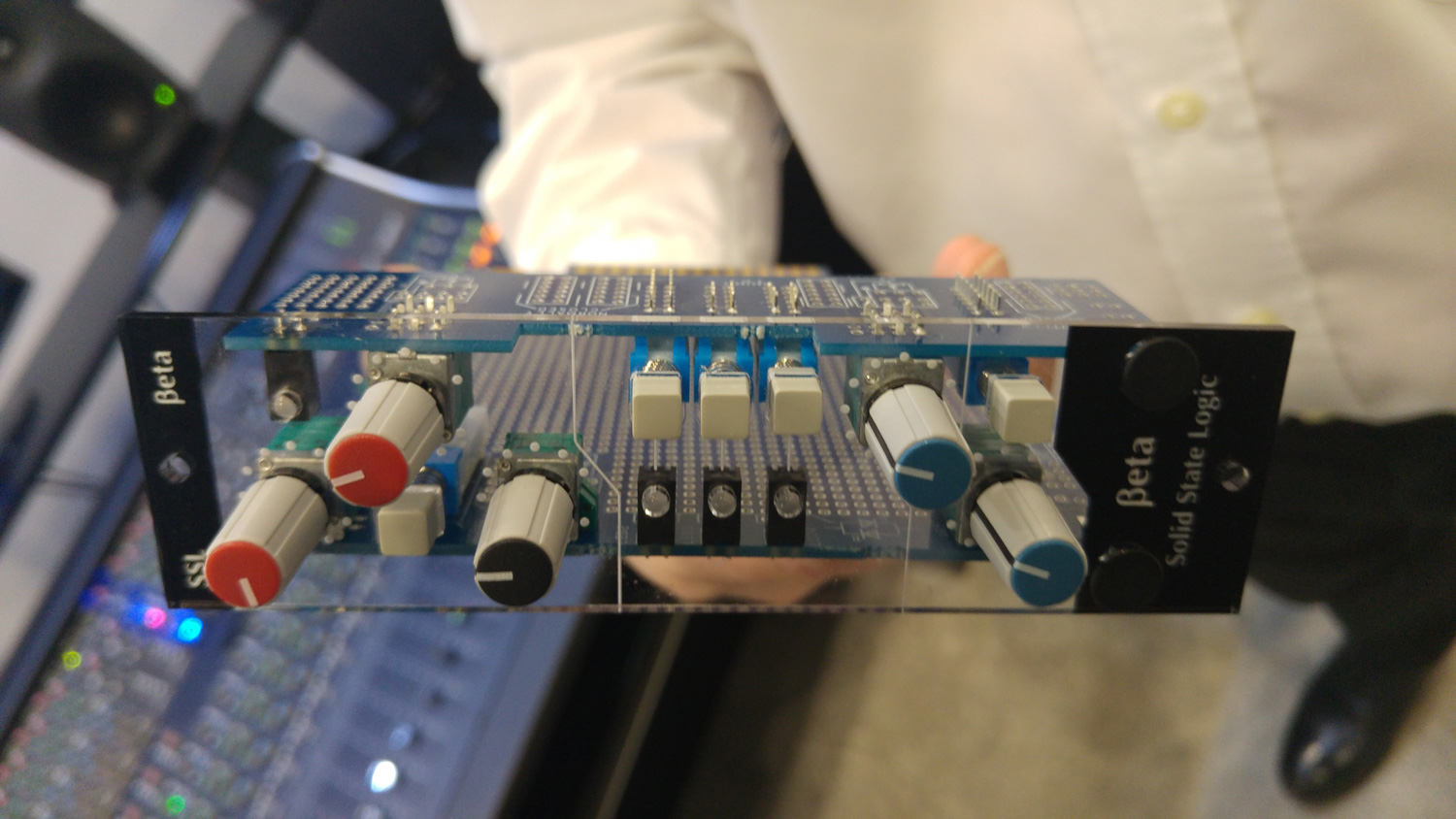 Baptisé ßeta, ce module au format 500 inclut une façade Perspex éclairée, cinq potentiomètres logarithmiques, anti-log et linéaires (dont des modèles avec détente centrale) avec capuchons maison, des switches 2 ou 4 pôles et des LED de statut bicolores. Tous ces contrôles physiques sont identiques à ceux utilisés sur les consoles SSL et pourront être configurés/assignés librement. La façade et les contrôles se fixent à une carte de circuit électronique (il vous faudra manier le fer à souder) et SSL fournit le connecteur SSL et les fusibles.