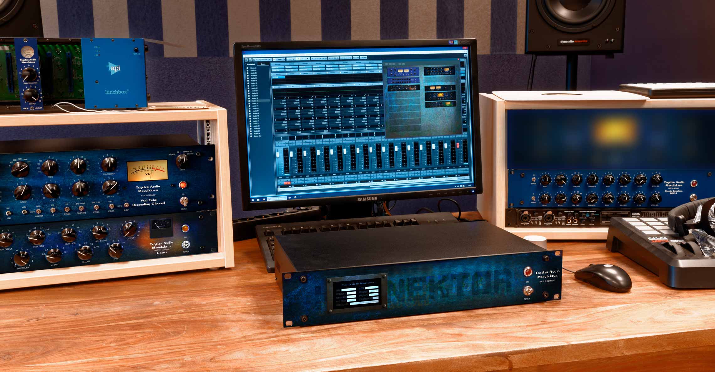 Le Konnektor est une baie qui pourra relier et contrôler 8 processeurs analogiques depuis votre STAN. Le rack comprend un chemin de signal entièrement analogique, seul le contrôle se fera de manière numérique par le biais d’un plug-in VST, AU et AAX à installer dans votre STAN ou d’une page web.