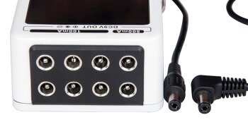 Le plus de cette pédale est la présence d’une section de puissance avec protection contre les court-circuits et surtensions et à l’arrière du boîtier sont installées 6 sorties de 100 mA et deux de 500 mA pour alimenter différents types de pédales. Toutes les sorties sont en 9V et isolées.