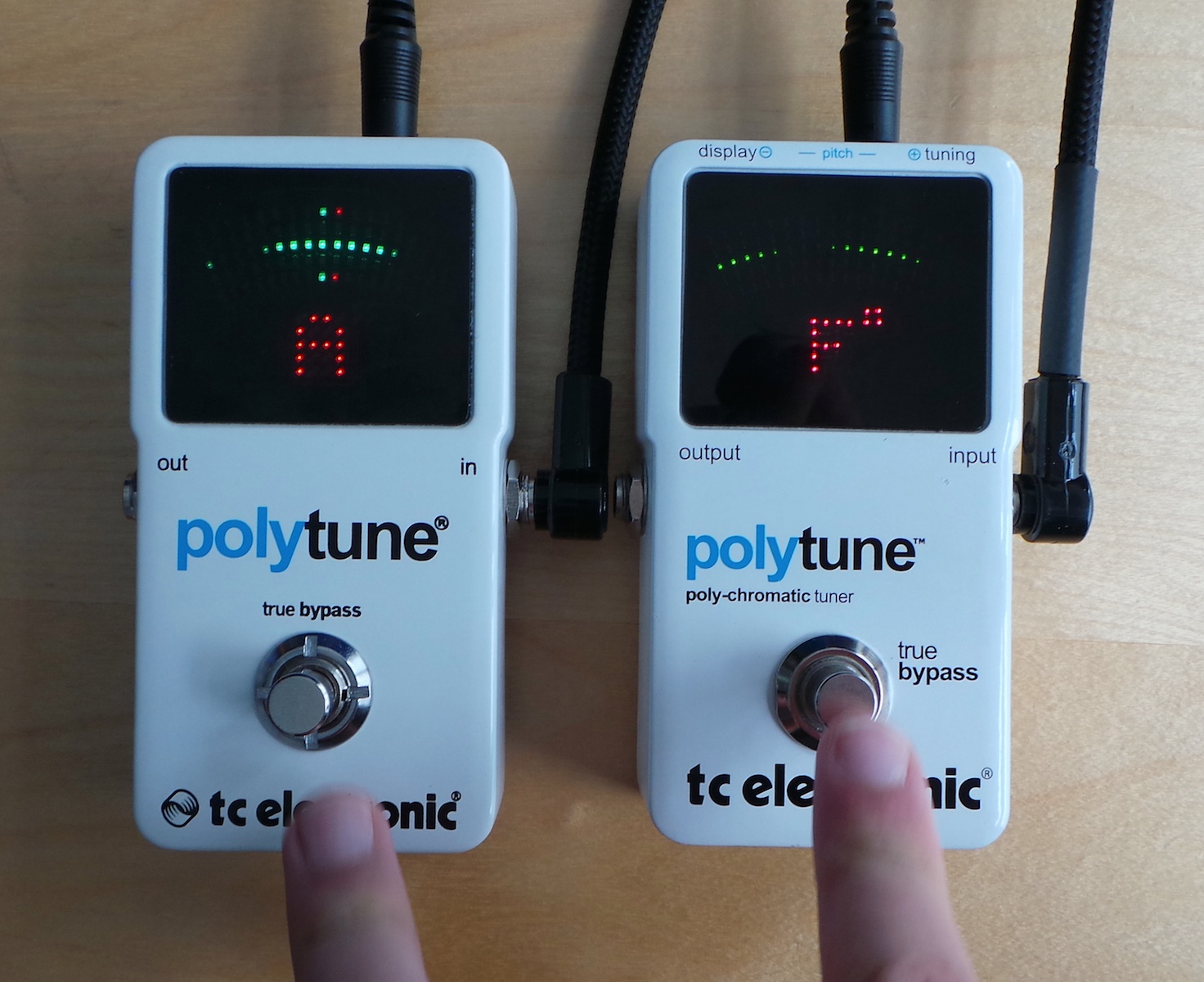 Vous l’aurez compris, les différences entre ces deux versions se comptent sur les doigts d’une main, et nous avons plutôt affaire à une mise à jour qu’à une véritable version 2.0. Le nouvel écran est vraiment plus lumineux, surtout en ce qui concerne les LEDs vertes qui resterons plus visibles sous les spots d’une scène. Le switch nous a aussi paru un peu mieux, un peu plus haut et moins dur, ce qui facilite l’enclenchement de l’accordeur.