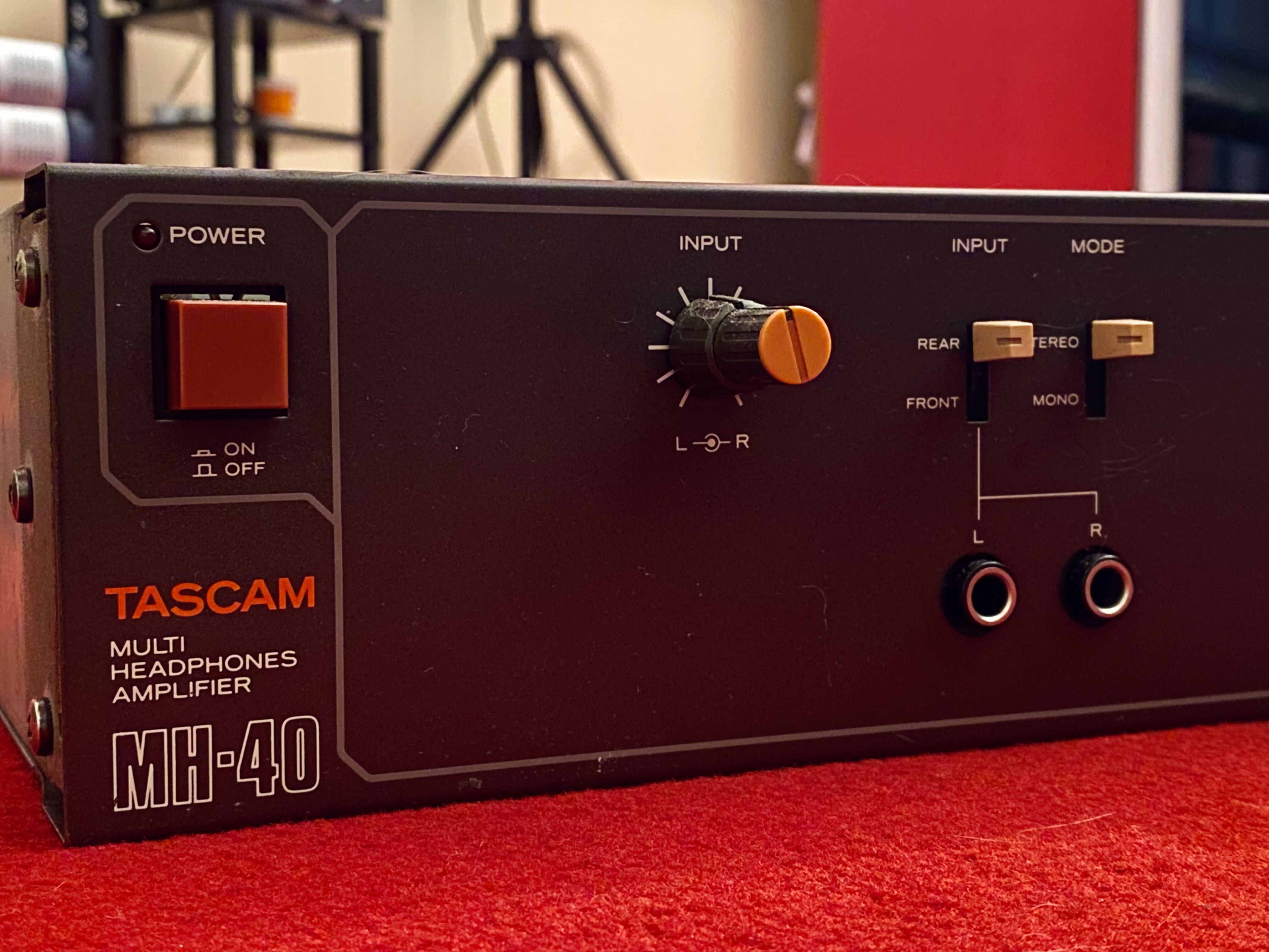 Je vends cet amplificateur TASCAM MH-40 pour 4 casques audio, idéal pour un home studio professionnel. Il est en très bon état, les potards crachotes un peu lorsque qu'on tourne pour monter et baisse le volume mais avec un dégrippant ça devrait le faire. Les 4 preamp fonctionne, parfait pour des retour casque en enregitrement.- Type de produit : Amplificateur casque