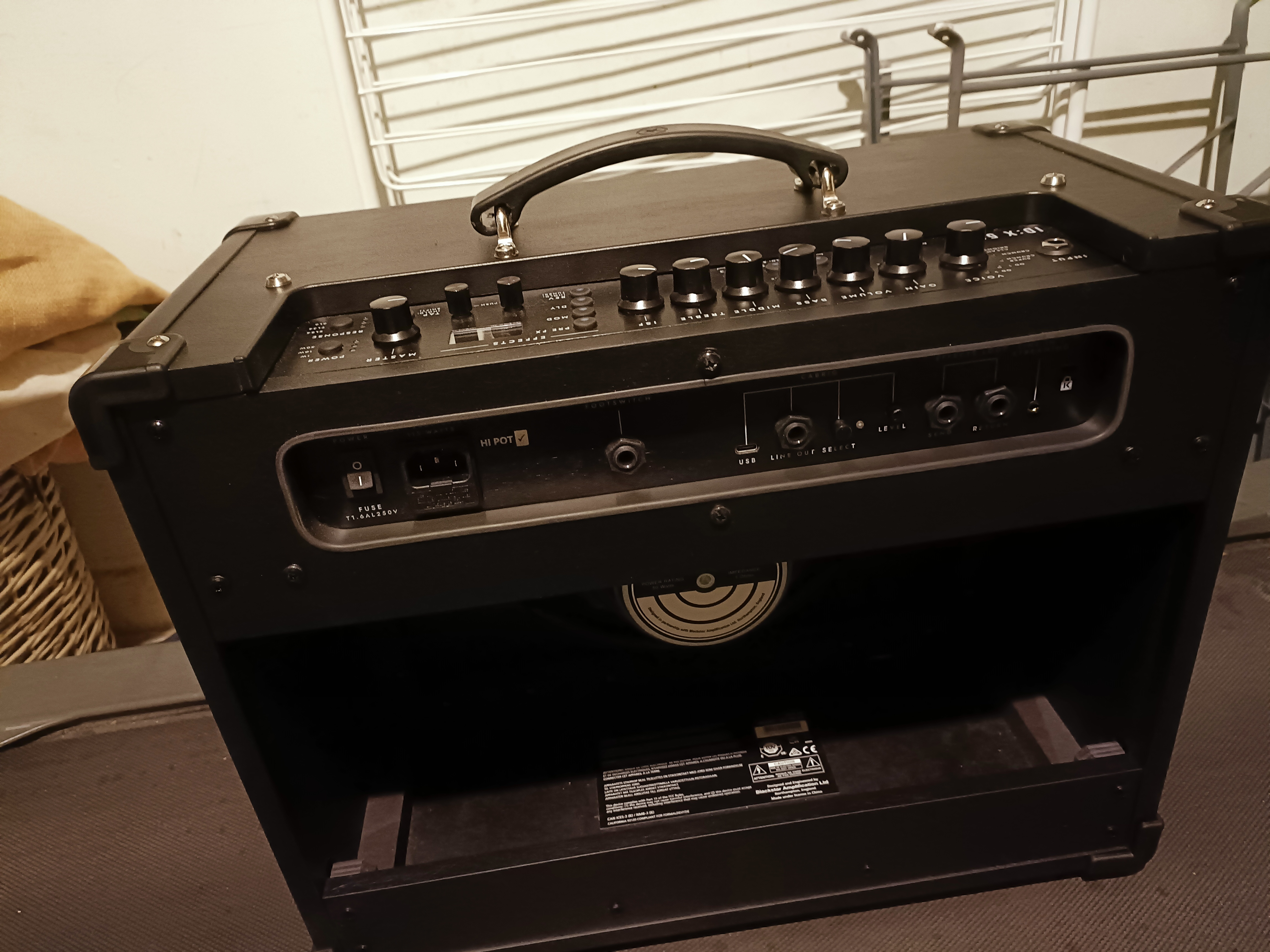 - une housse d'enceinte Thomann que j'ai adaptée à l'ampli (couture + collage ... nickel)