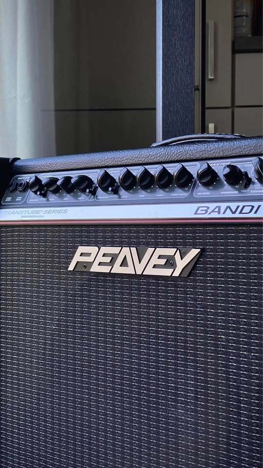 Amplificateur Peavey Bandit 112 entièrement révisé prêt à être utilisé.Amplificateur à transistors avec technologie TransTube (brevet déposé par Peavey) imitant le comportement d’un amplificateur à lampes. Ampli connu pour ses sons clairs impressionnant et possédant énormément de headroom. Il possède également une enorme reverb mécanique à ressort placée dans le fond du caisson.