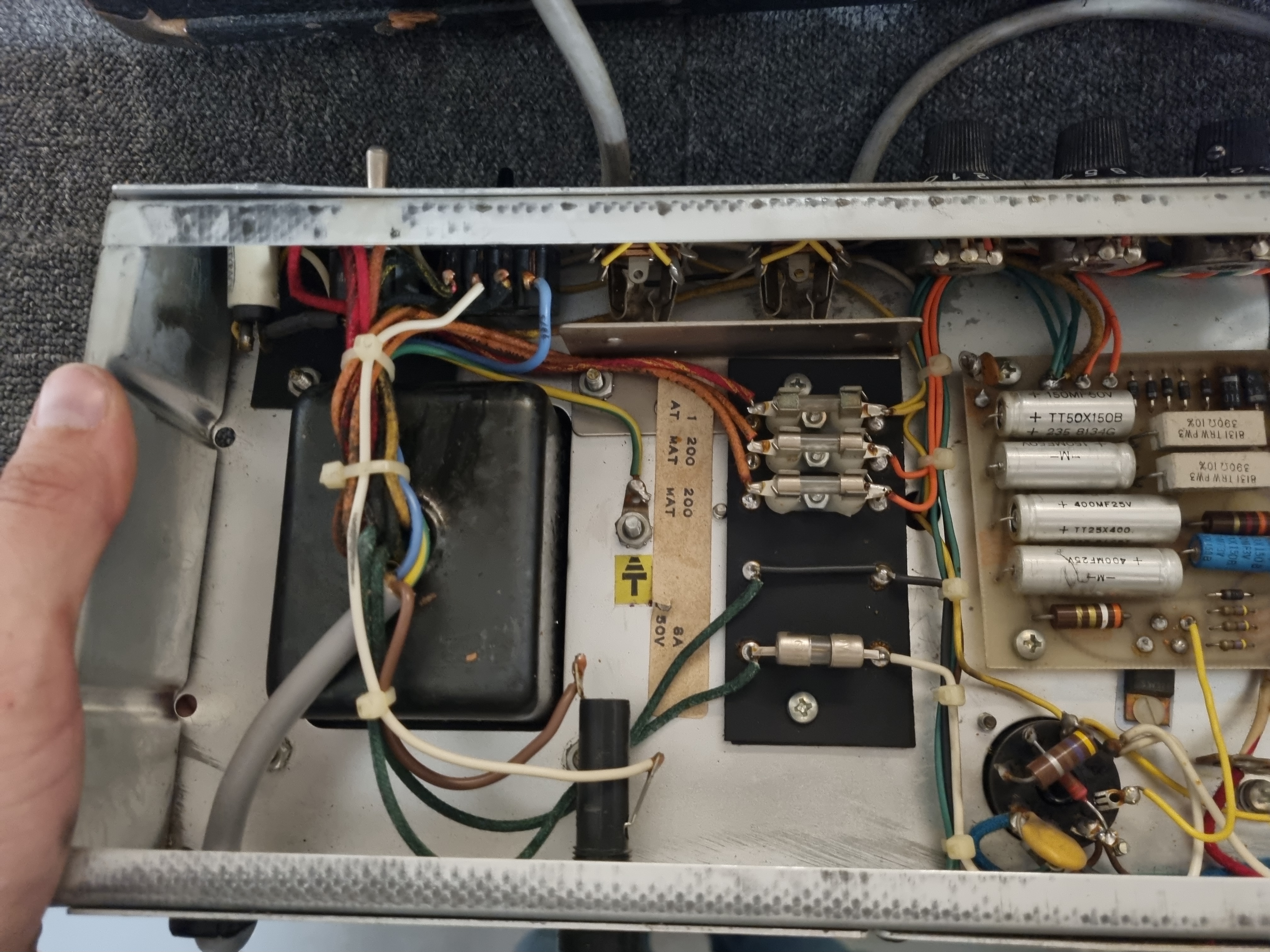 MusicMan est la seconde marque de Fender, crée dans les années 70 (il y en aura une troisième : G&L). Voici un gros combo hybride, dans la veine du Twin Reverb en moins puissant, le Sixty-Five ! Section amplification à lampe et pré-amplification à transistor, il dispose par ailleurs d'une reverb et d'un phaser. Vendu avec son footswitch, le HP d'origine a été remplacé par un Celestion G12 Neo.Dépôt-vente, achat, vente, reprise, location.