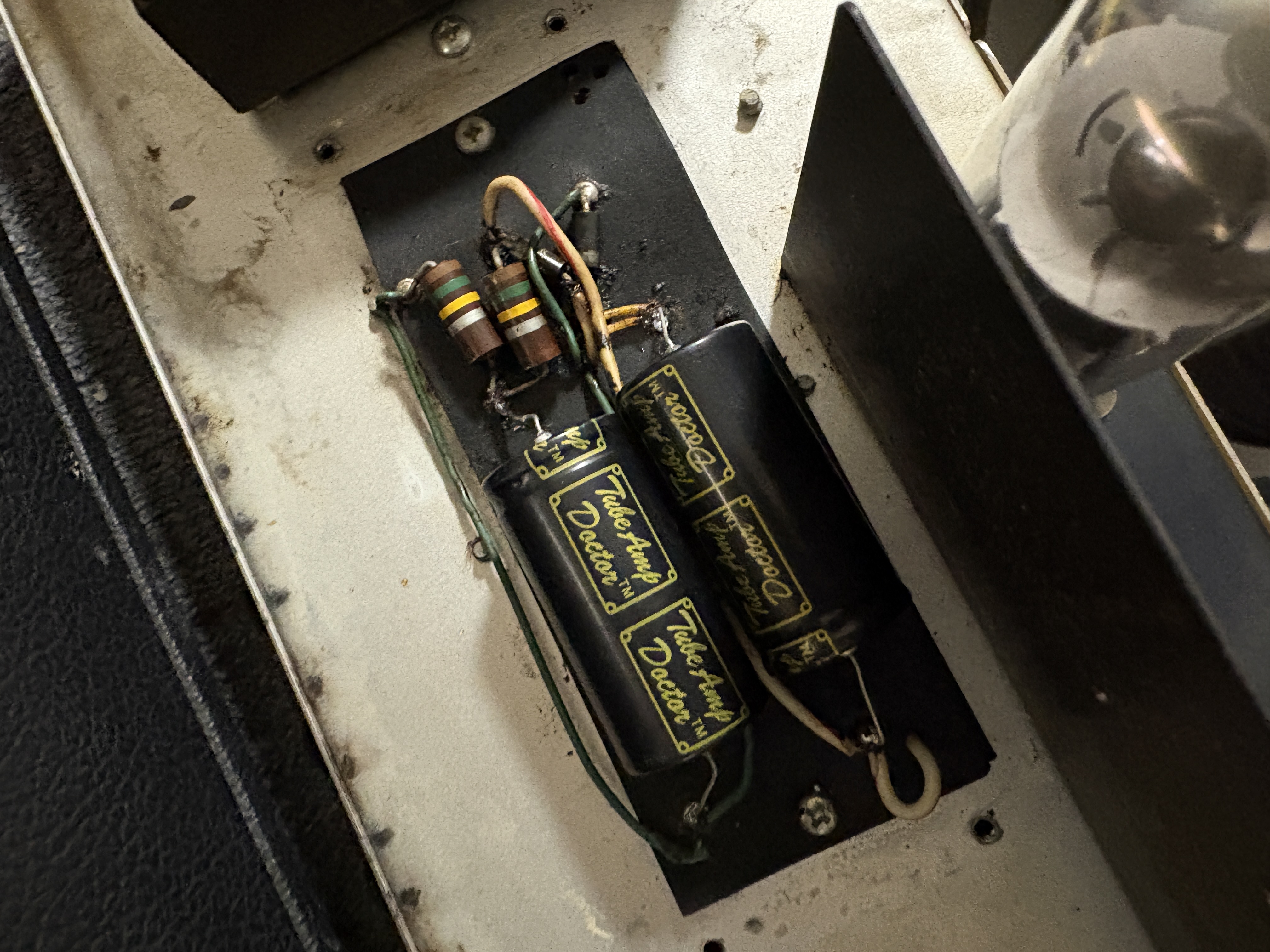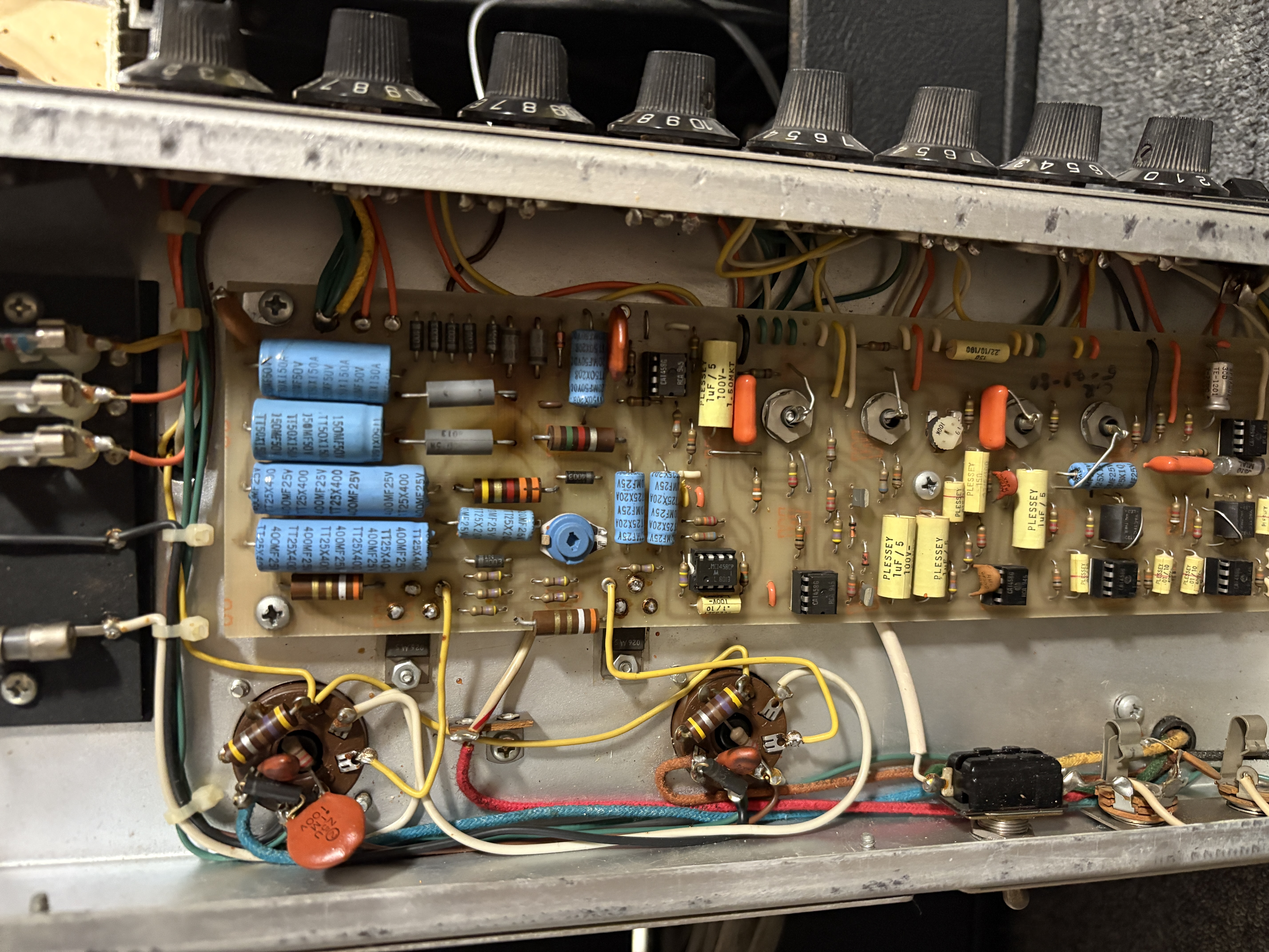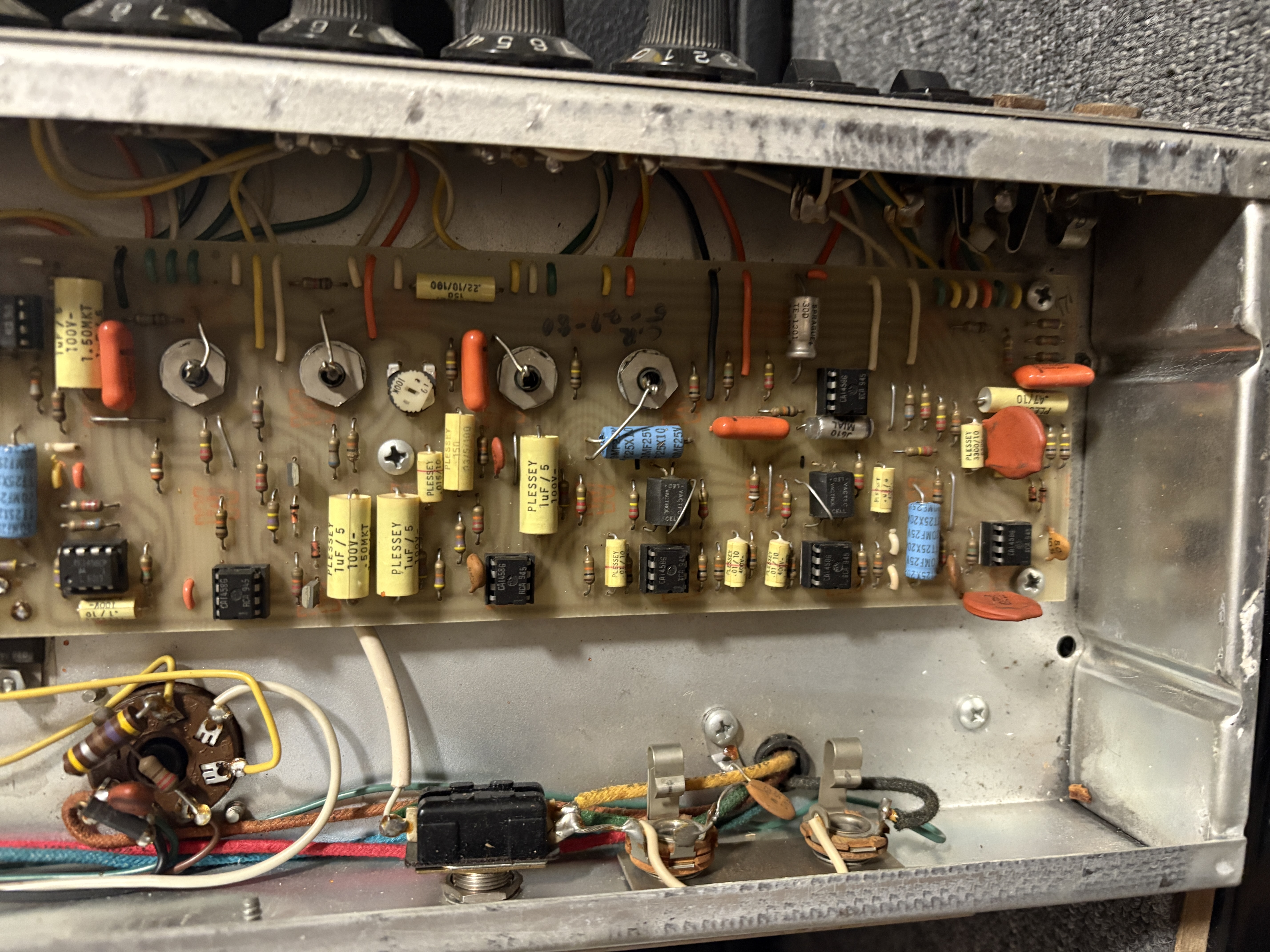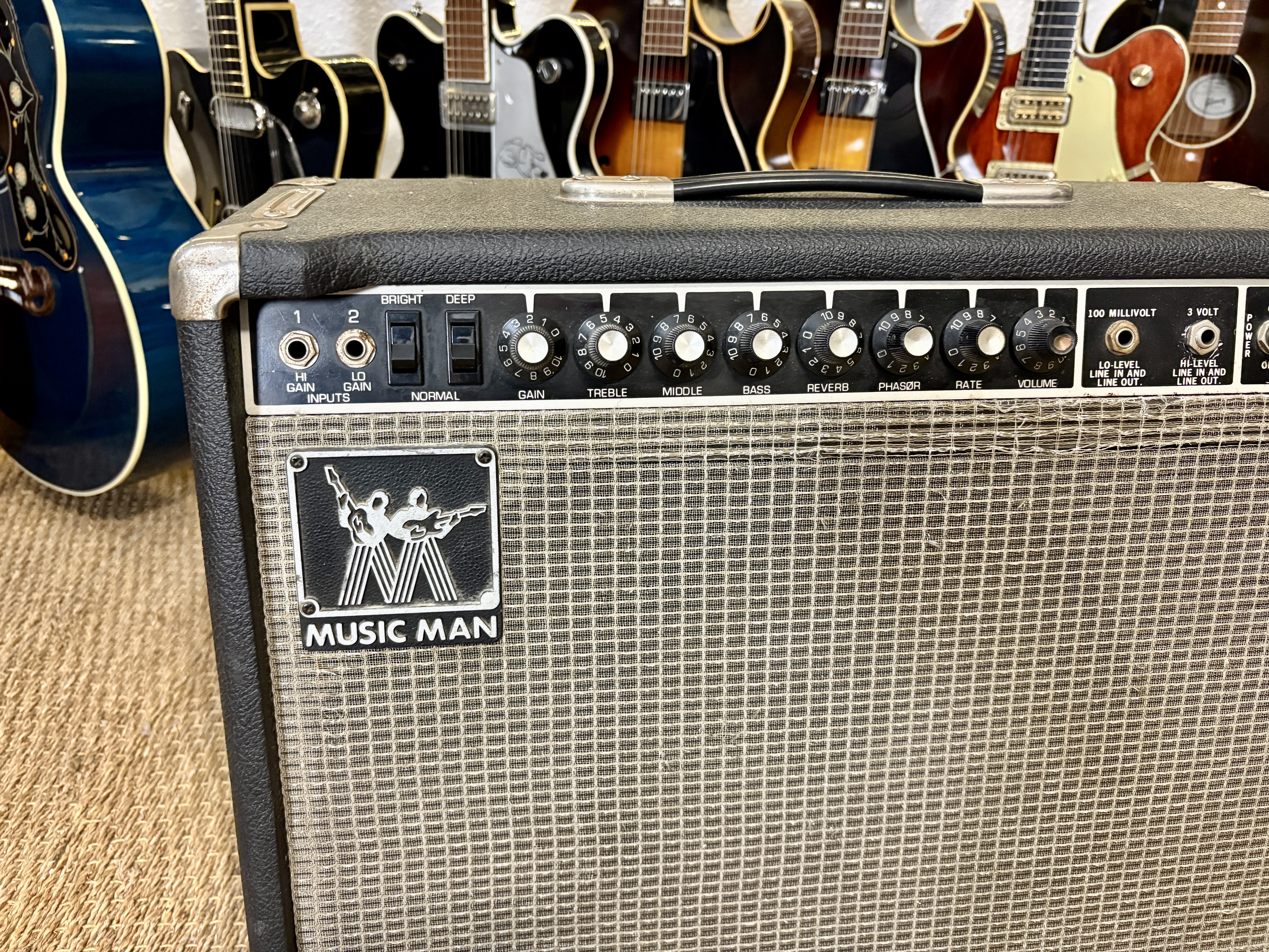 MusicMan est la seconde marque de Fender, crée dans les années 70 (il y en aura une troisième : G&L). Voici un gros combo hybride, dans la veine du Twin Reverb en moins puissant, le Sixty-Five ! Section amplification à lampe et pré-amplification à transistor, il dispose par ailleurs d'une reverb et d'un phaser. Le HP d'origine a été remplacé par un Eminence Legend. Celui-ci sort d'une révision chez Will-Fx.Dépôt-vente, achat, vente, reprise, location.