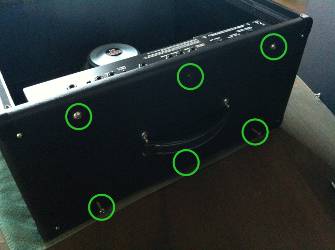 Pour ce faire, démonter l’ampli du châssis en dévissant les six vis du dessus de l’ampli.