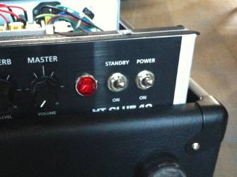 L’ampli doit être rebranché. Avant toute chose, vérifier que les interrupteurs STANDBY et POWER sont sur OFF. Rebrancher le jack du HP (essentiel !) et le cordon d’alimentation.