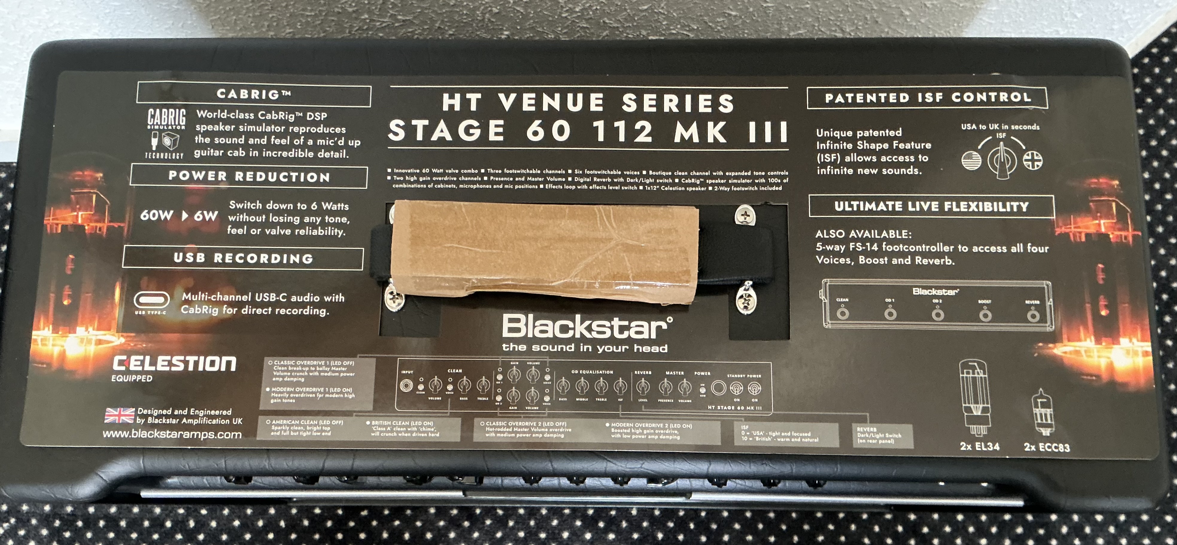 Avec le Blackstar HT Stage 60 112 MK III, le fabricant d’amplificateurs britannique présente la version révisée du combo à valve de la série HT Venue. Basé sur un circuit à deux lampes ECC83 et deux lampes EL34, l’ampli compact à trois canaux délivre une puissance de 60 watts via un haut-parleur Celestion de 12 pouces et offre des réserves de volume suffisantes pour une utilisation sur scène ou dans la salle de répétition. Le canal "clean" et les deux canaux "drive " offrent des sons polyvalents entre clean et une distorsion totale grâce à des voicings commutables, tandis que les commandes de tonalité et la fonction " Infinite Shape" (ISF) permettent un réglage précis de la tonalité. De plus, le combo offre un effet de réverbération intégré et une boucle d’effets en série.