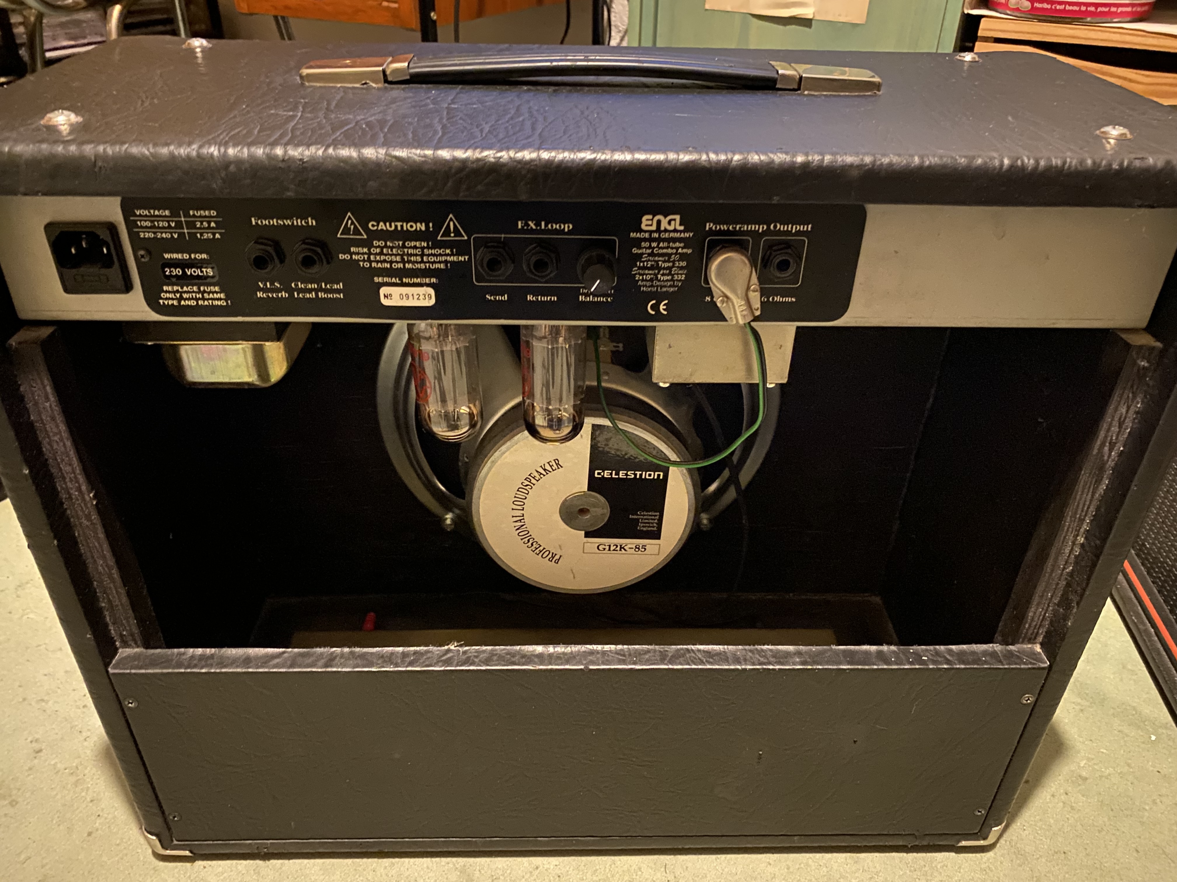 Bonjour,Je vends un ENGL Screamer 50 de fin 90 (acheté en 1998, facture d’achat du premier proprio) en assez bon état cosmétique et très bon état de fonctionnement (révisé entièrement, facture à l’appui). 2 canaux + reverb, 50 watts tout lampe (2 6L6 et 4 12AX7), hp Celestion G12K-85 d’origine, son clair prenant très bien les pédales d’effet et canal saturé qui va du hard rock au métal, grosse réserve de puissance et flexible grâce au master volume + 1 volume par canal, boucle d’effet avec réglage de mix. Vendu avec un footswitch : 300 euros
