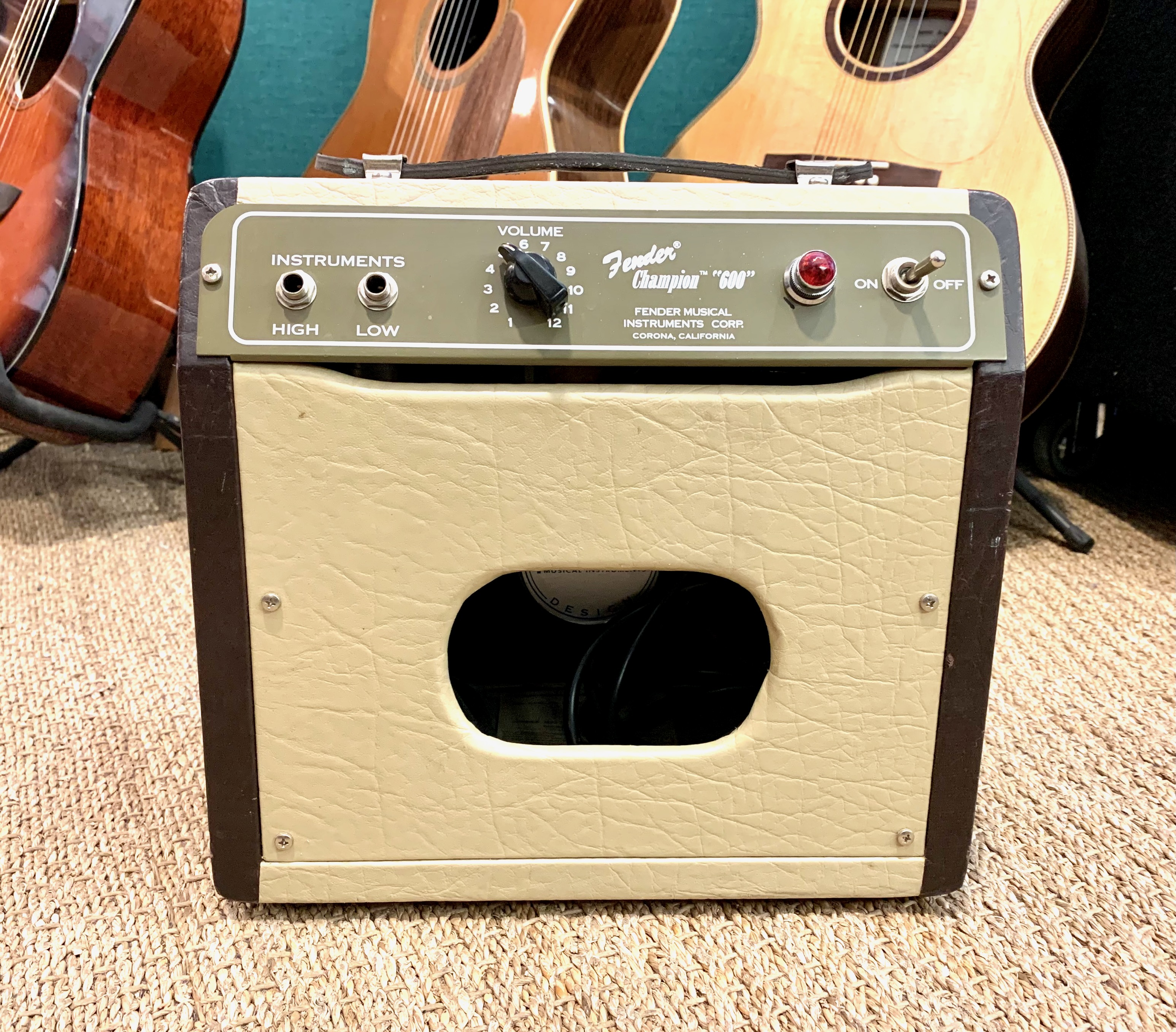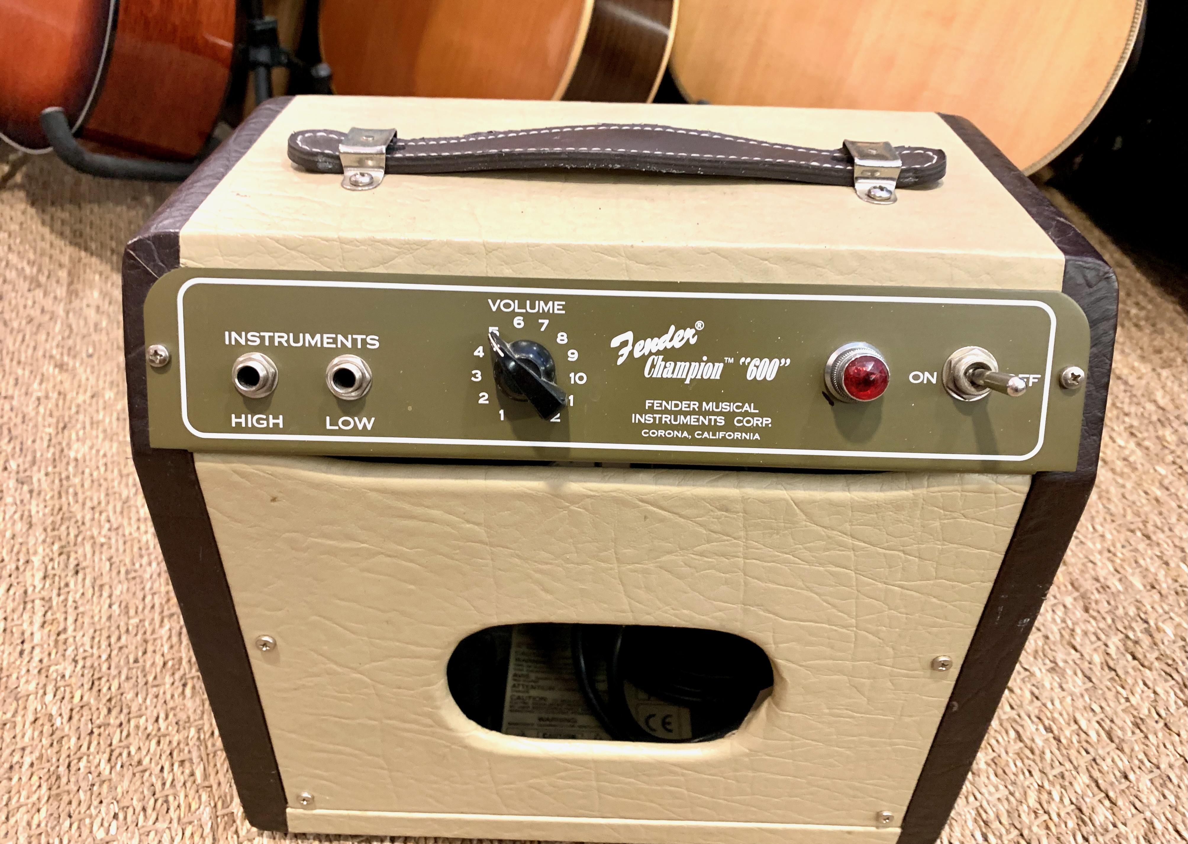 Le Fender Champion 600 est un petit combo à lampes de 5 watts, réédition du modèle des années 50. Il dispose d’un haut-parleur de 6 pouces, d’un circuit très simple avec deux entrées, un volume unique et aucune égalisation ni effets intégrés.Location, achat, vente, reprise, dépôt-vente.