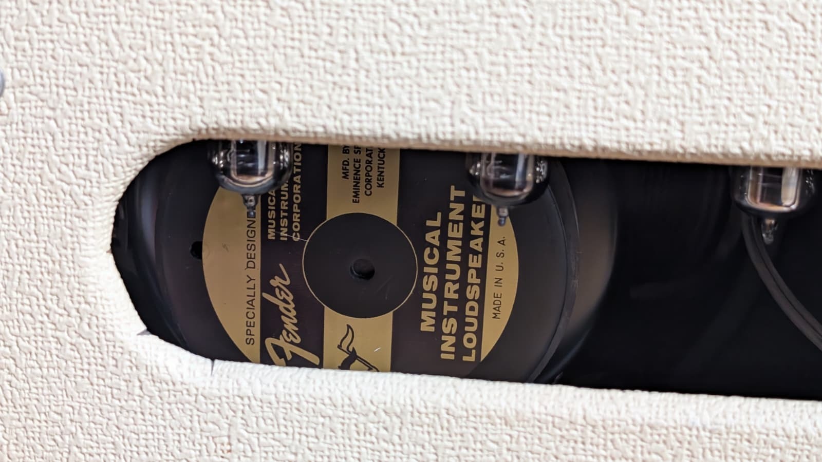 Etat cosmétique irréprochable (aucune déchirure, aucune tache), usage exclusivement domestique et soigné. Haut-parleur : Eminence Special Design Gold Label d'origine, en parfait état.