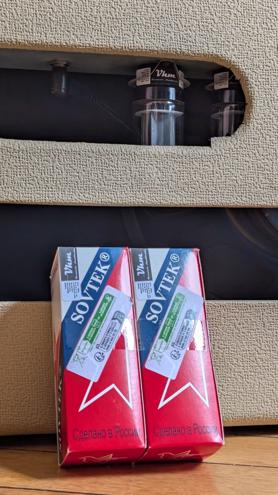 Lampes de puissance Sovtek 5881WXT neuves, installées le 18 décembre 2025 lors de sa dernière révision.