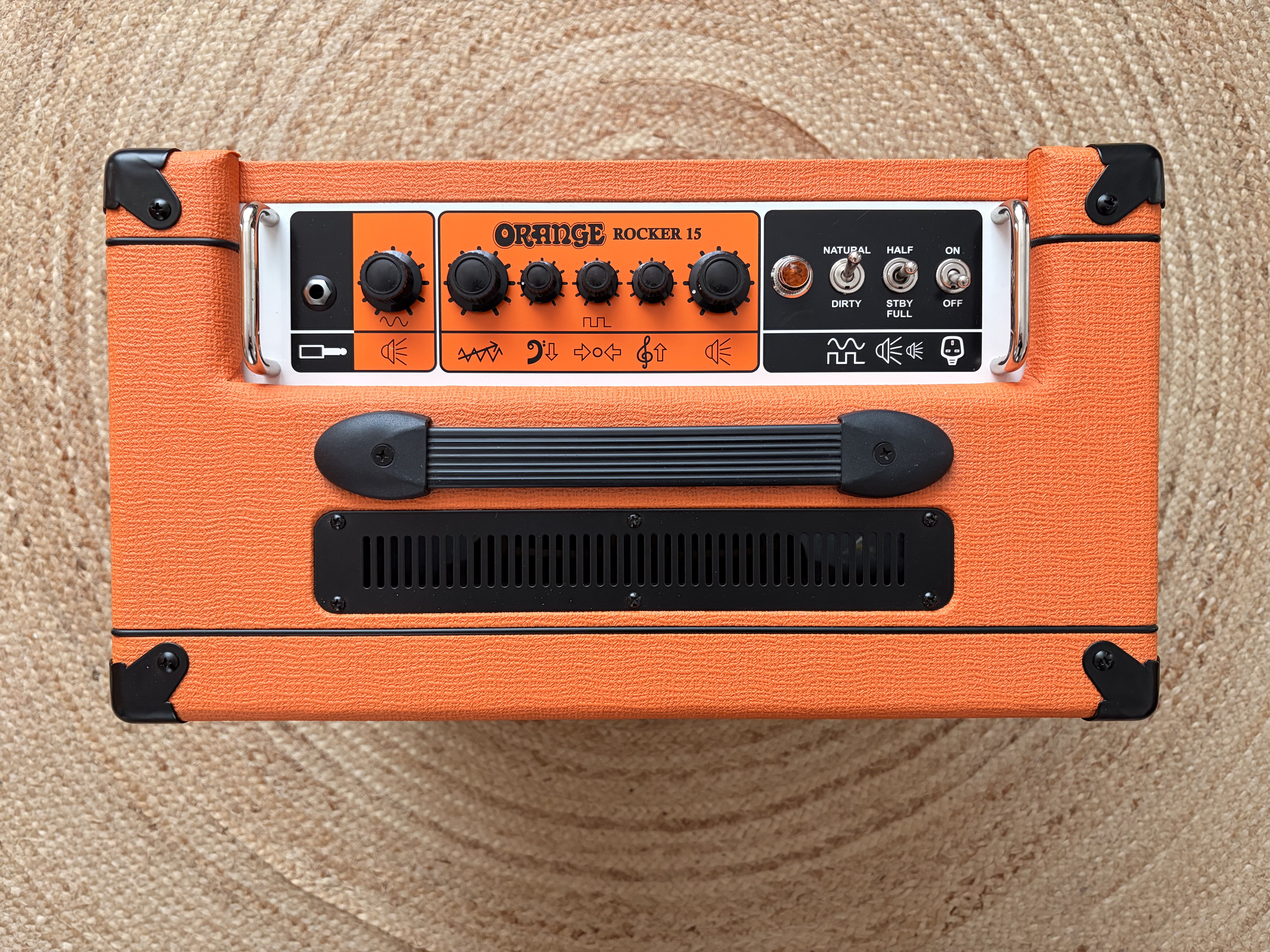 Clever options aside, the Rocker 15 has real character – a twin channel design with a twist. The Natural channel is a purist’s dream with just a single knob: Volume. Finely balanced and supremely playable, this channel is perfectly voiced to bring out the ‘natural’ sound of the instrument under your fingers (or the pedals under your feet). The ‘Dirty’ channel is a more familiar affair with controls for Gain, Volume and a three band EQ section. Both channels are very sensitive to touch and playing dynamics, making Rocker 15 very versatile despite its straightforward, player-friendly layout.