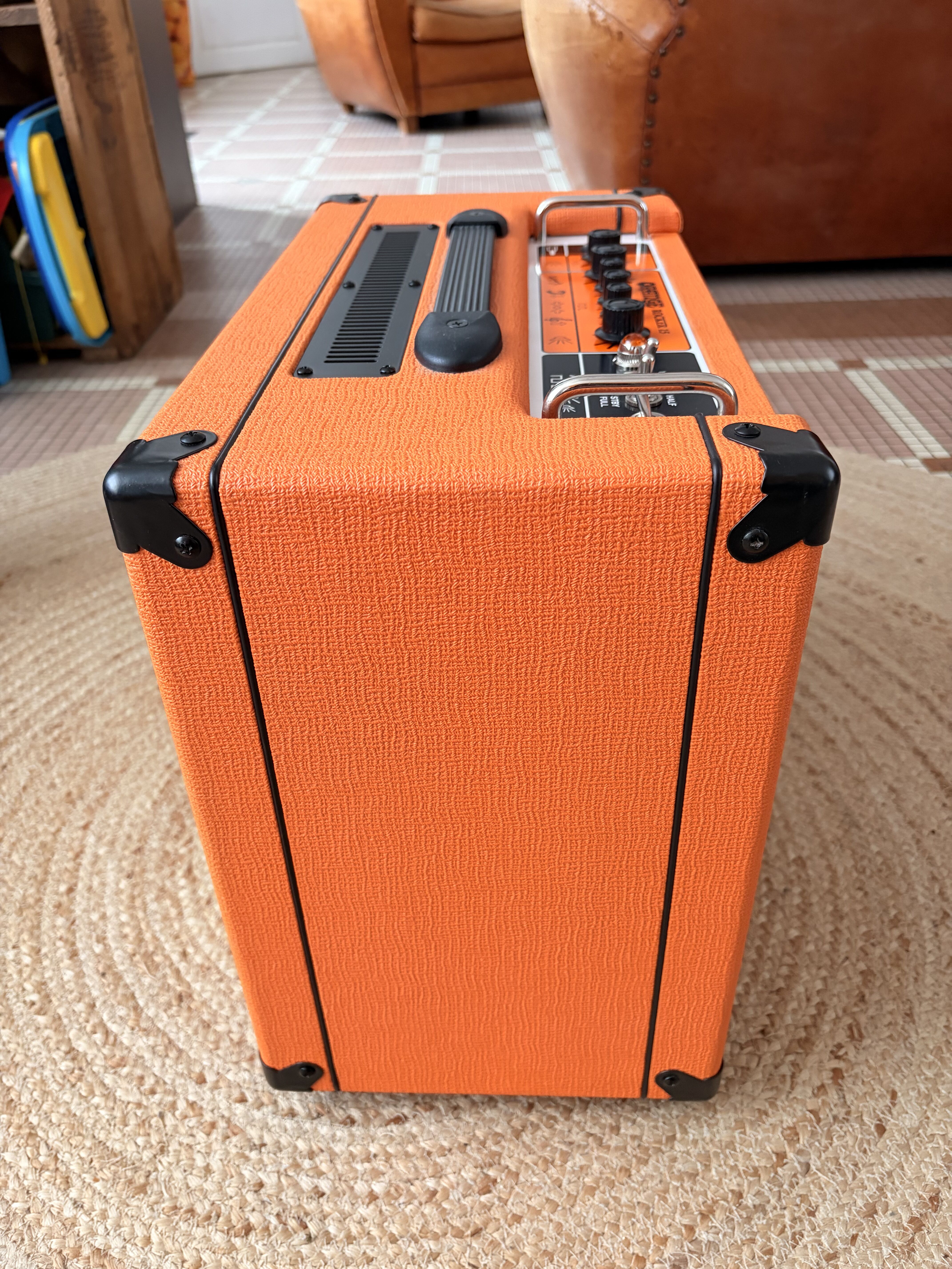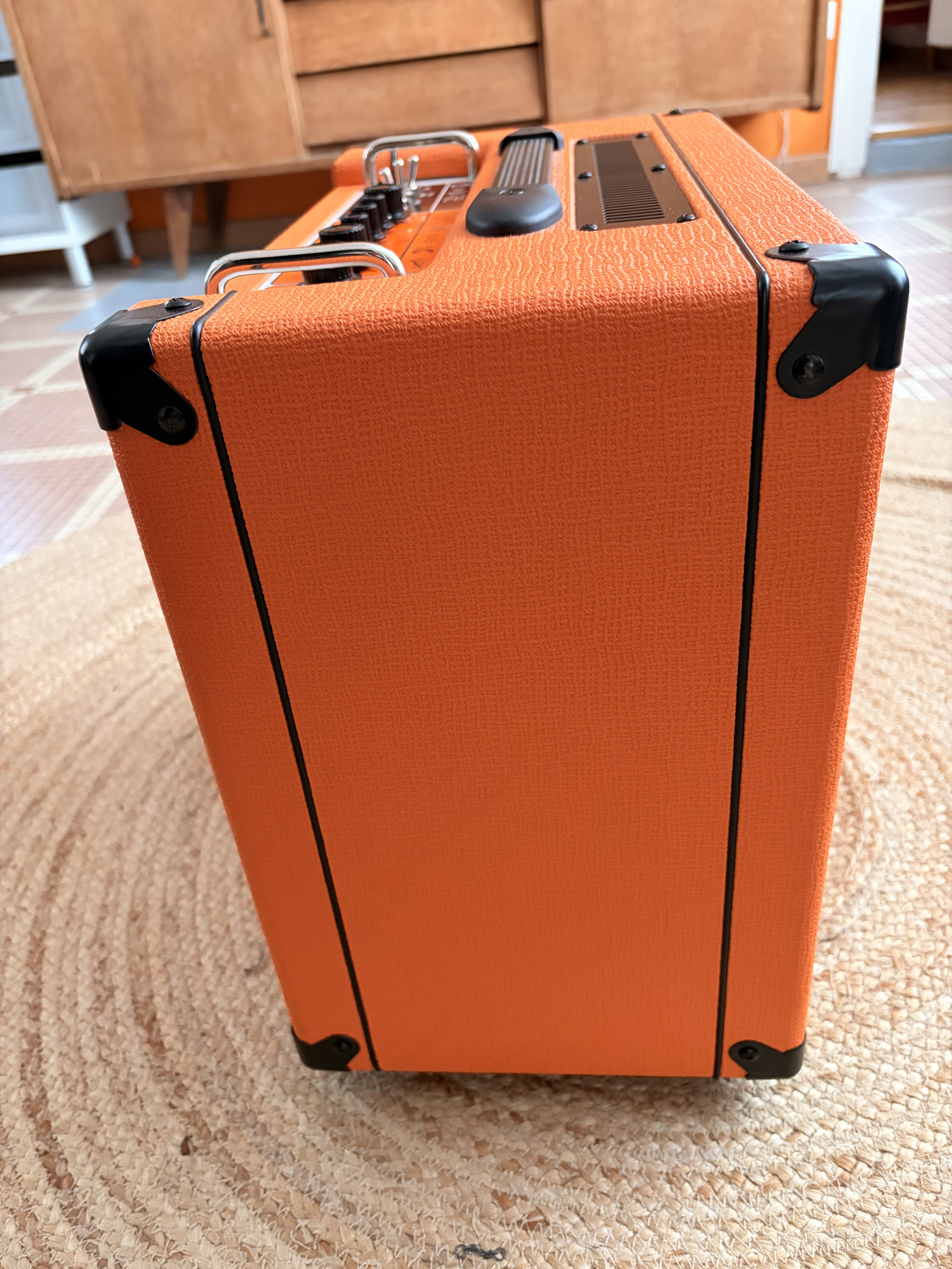 J'ai cet ampli depuis 1an environs. Adorateur de la marque Orange et conservant un ampli à lampes a côté d'un transistor, celui ci m'a paru tout indiqué pour la maison.