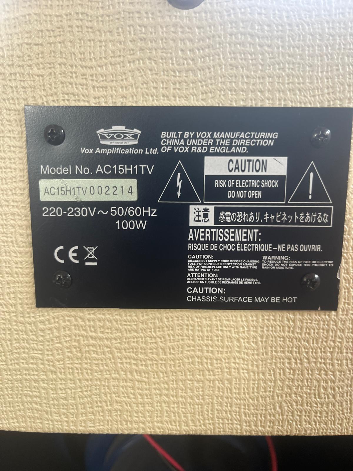 Vends Vox AC15H1TV