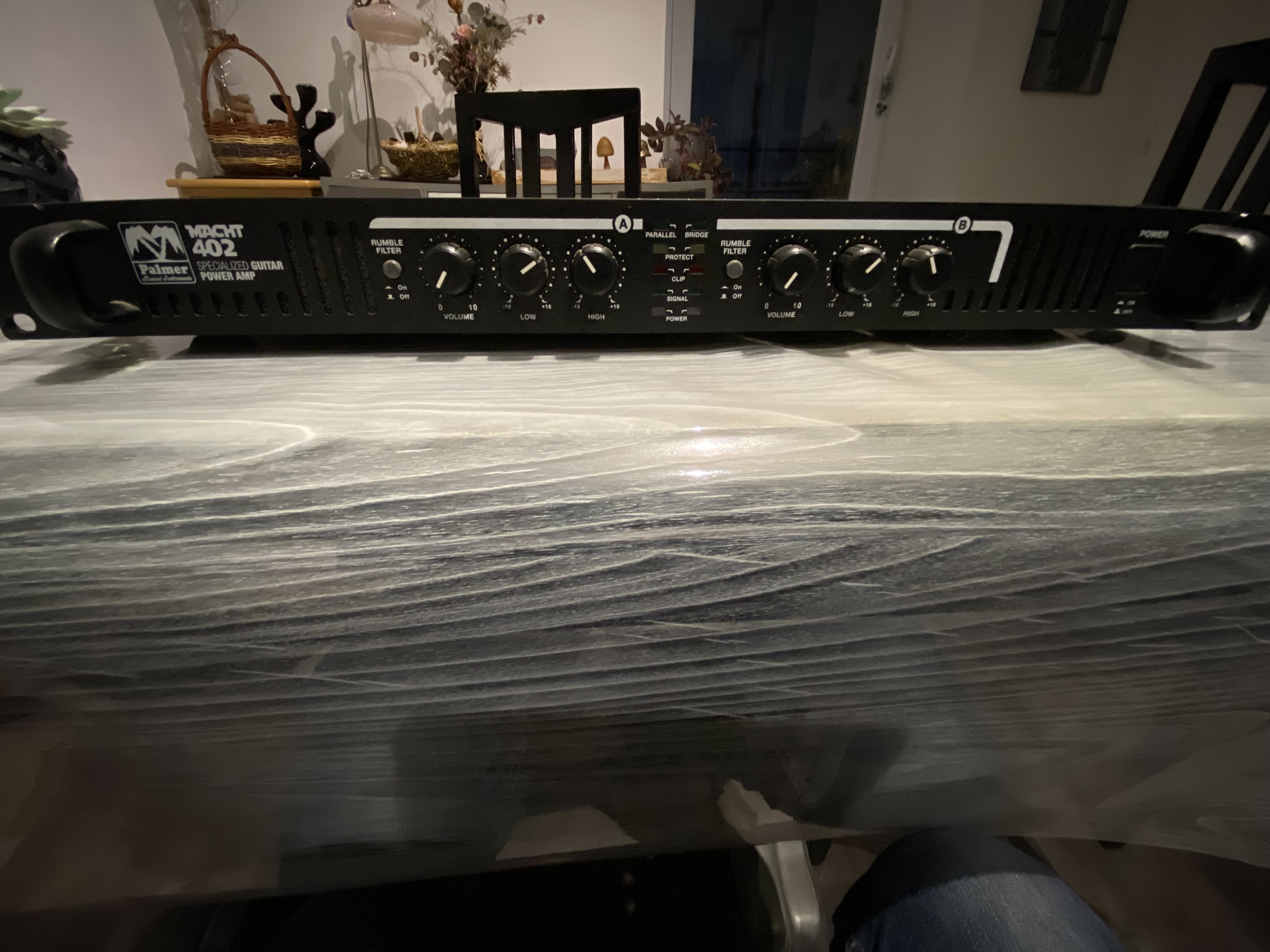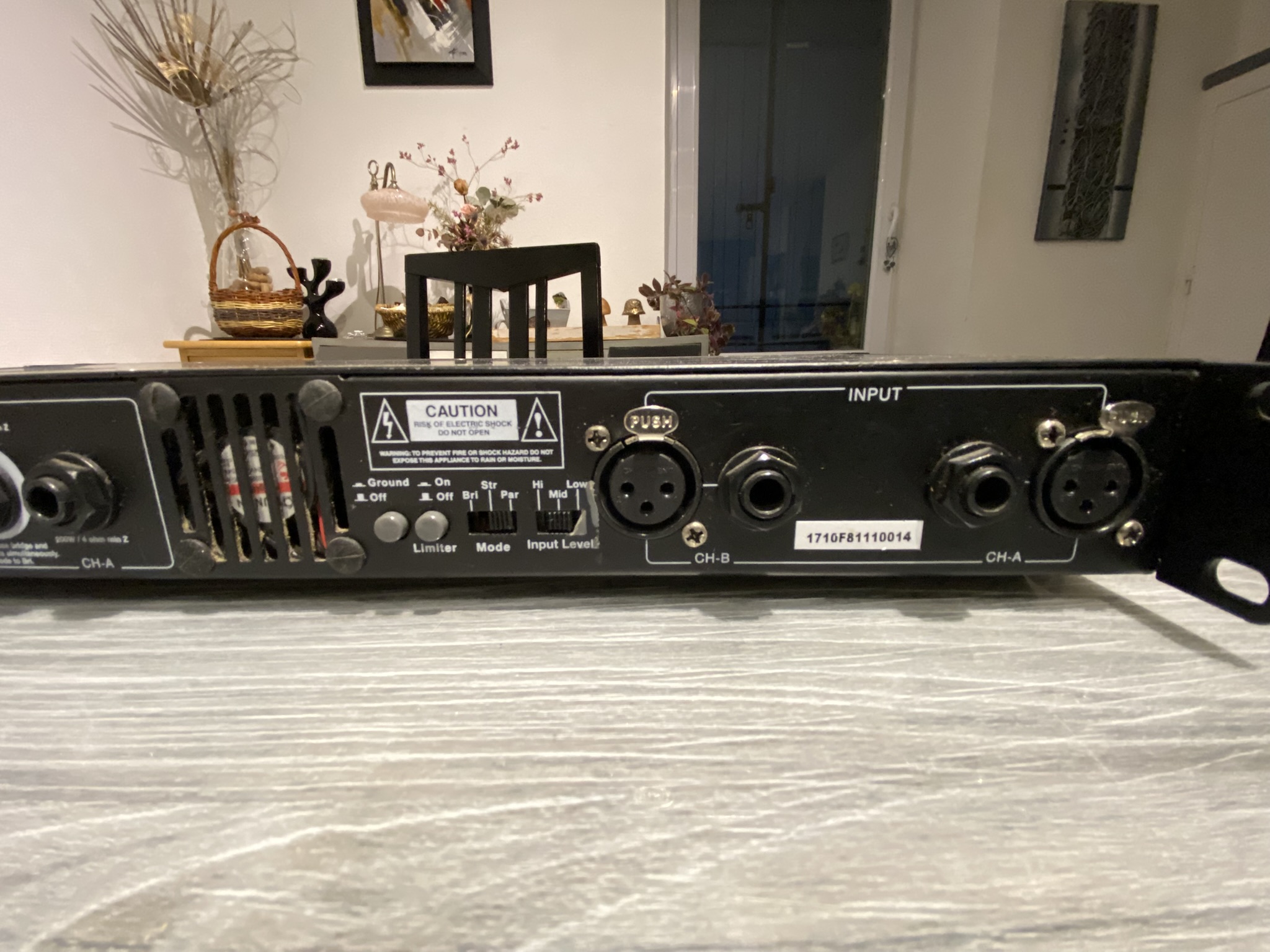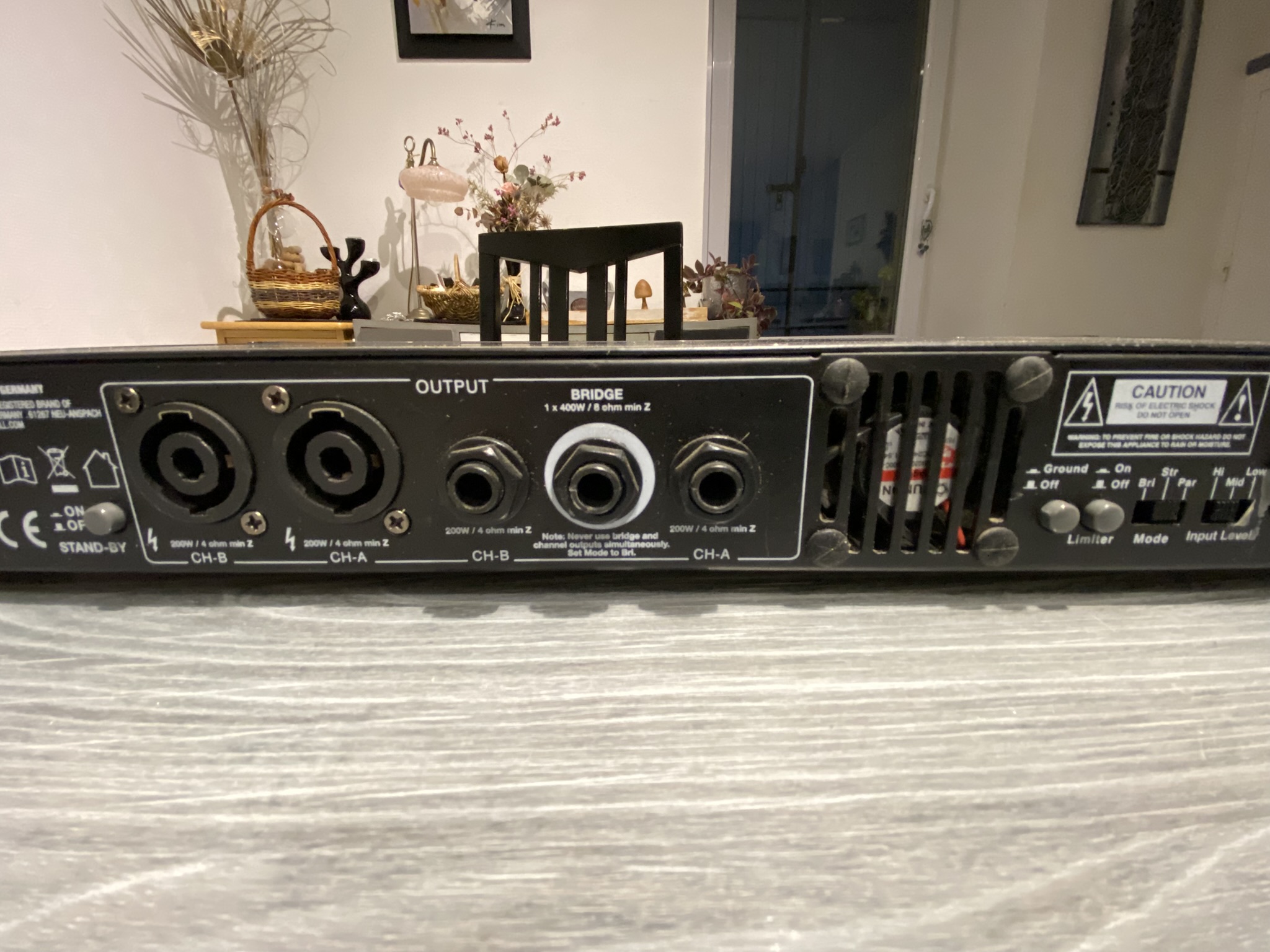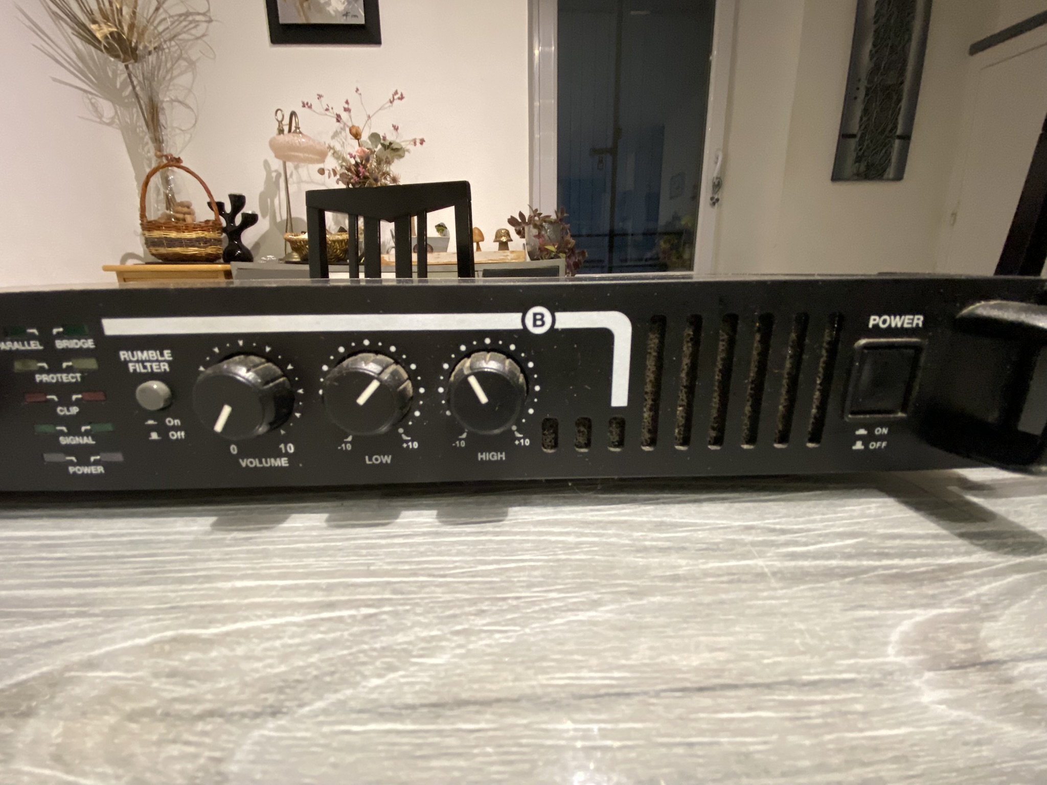 Eléments de contrôle: On/Off, Volume, High, Low, Mode (Bridge/Parallèle/Stéréo), Ground Lift, Limiteur de sensibilité