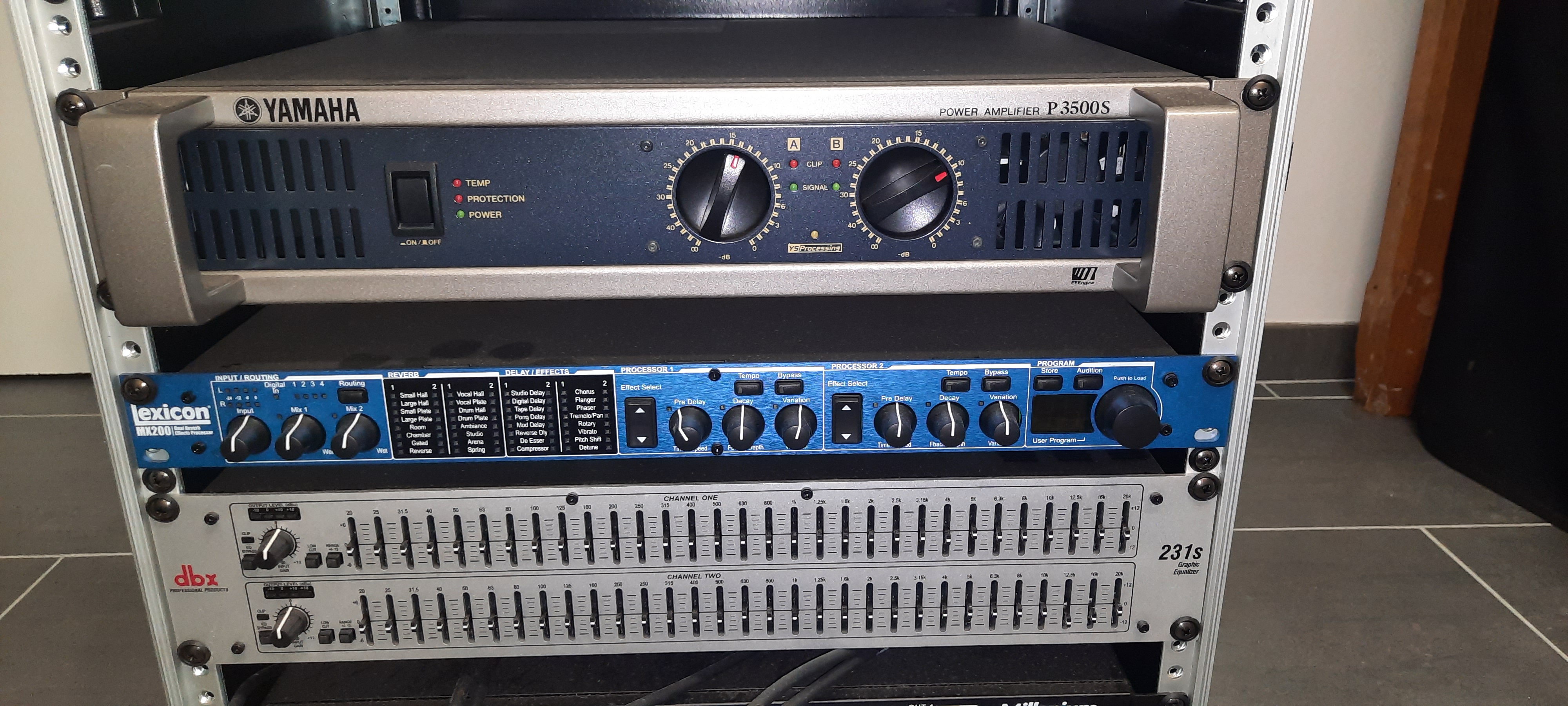 Rack Gator roller 19' équipé + ampli yamaha P3500S + Lexicon MX 200 + DBX 231S + Millenium SP8 + cables et accessoires.Très bon état jamais sorti du studio perso non-fumeur.