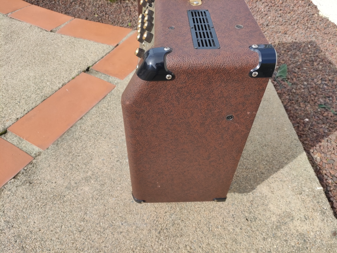 Bonjourcet ampli n'est plus à présenter, très polyvalent, de nombreux effets et de la puissance. Les HP d'origine ont tous été changés, ils sont neufs et le résultat est impeccable (dont Tweeter Monacord DTM 104/8). Il est équipé de roulettes dont deux bloquantes afin d'en faciliter le transport et la mise en place. Le prix reste symbolique compte tenu des HP neufs qui valent plus de 180 €, mais je ne joue plus et je fais du ménage.