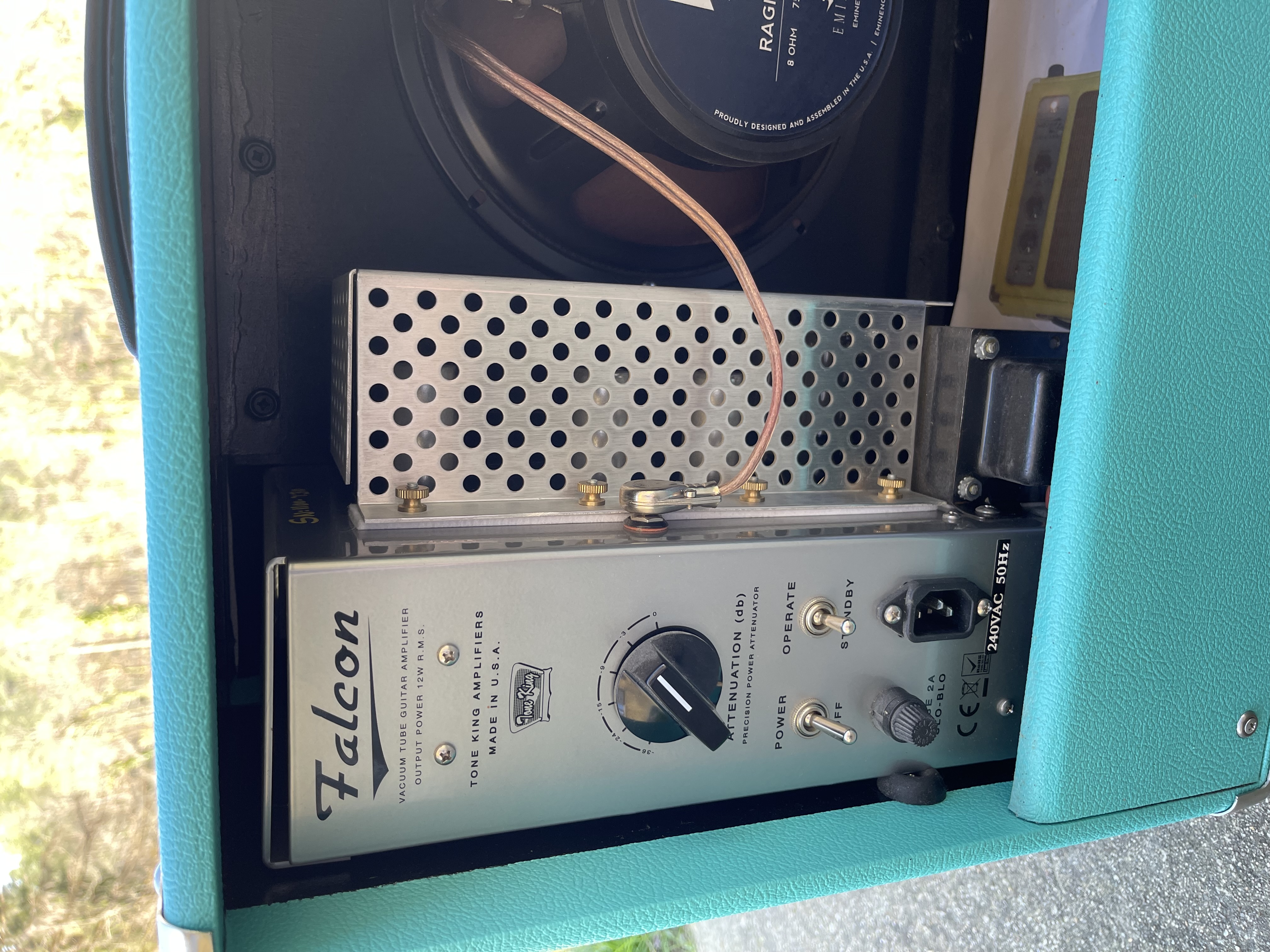 Ampli Tone King Falcon de couleur turquoise et blanc état neuf zéro défaut.
