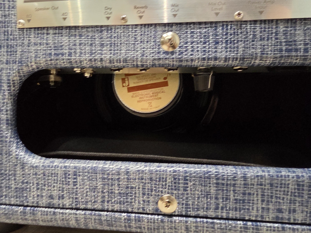 Contrôles: Volume, Treble, Bass, Reverb, Master, Mix Out Level
