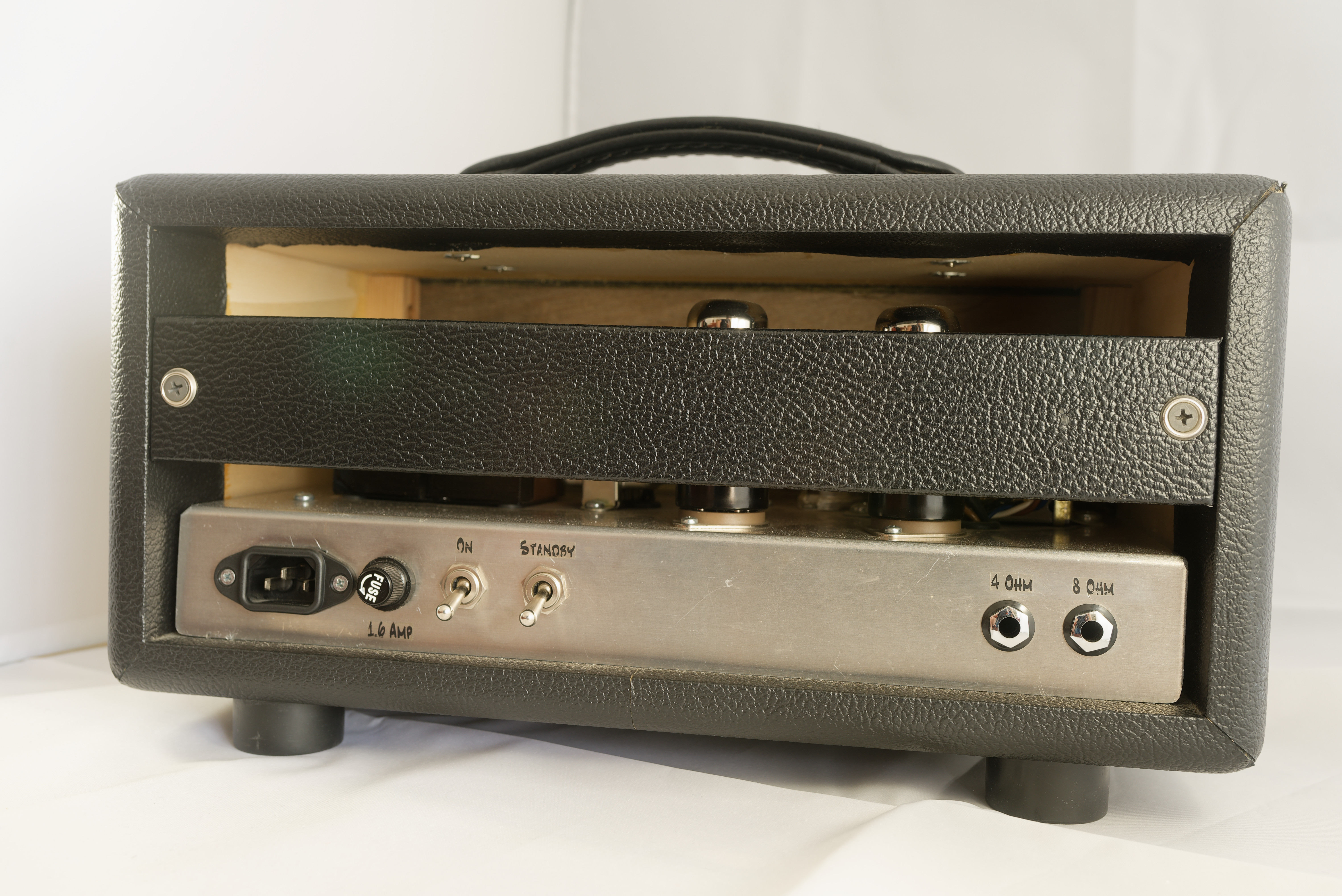 Ampli fait main par l'excellent Adam Wolfaardt. 15W à lampes. Il a été révisé et réactualisé par Adma lui-même qui m'a très gentiment accueilli chez lui pour ce faire, les lampes sont neuves et le circuit remis au gout du jour afin de régler un petit défaut dans les graves dans la version d'origine.C'est une parfaite platte-forme à pédales avec un son clair magnifique.
