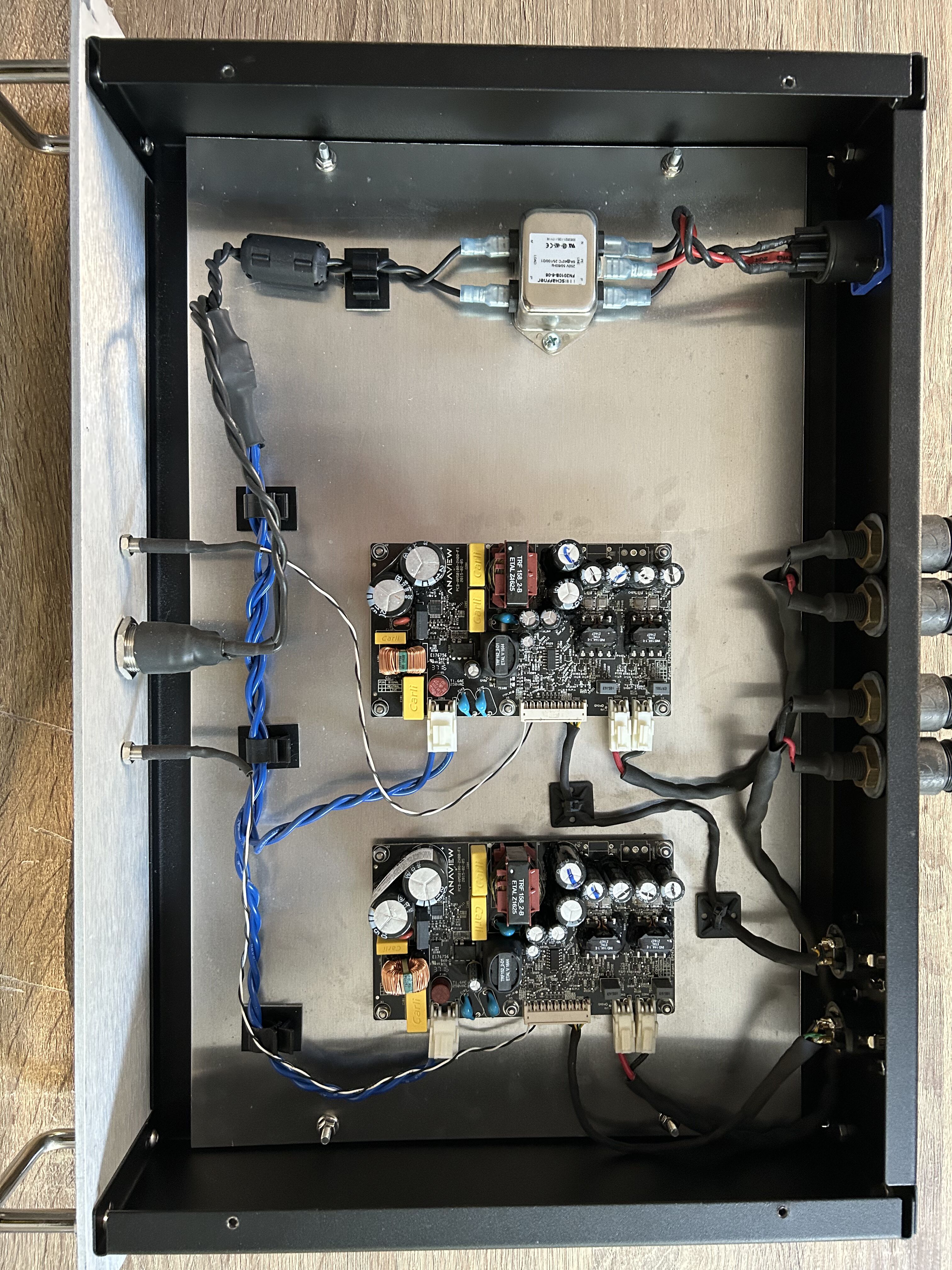 Bonjour,Je vends mon ampli Rouge Audio ayant les mêmes caractéristiques que l'Amphion Amp 100 (qui n'est qu'un assemblage) : modules Anaview AMS0100-2300 en classe D 2x100W, filtres EMI, connectiques plaquées or, (valeur neuve : 1084€). Aussi fournis : cables audio et alim.