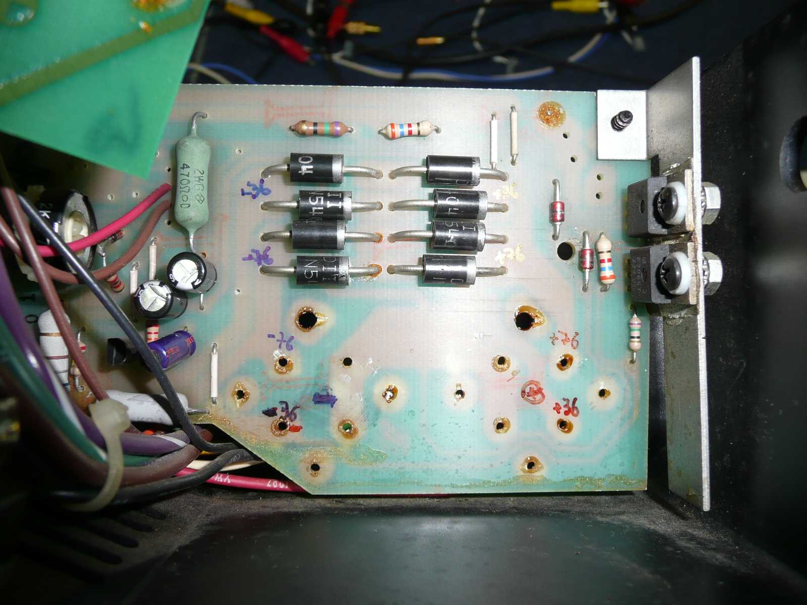- Il est dangereux à réparer sous tension, car il y a du +/-120V continu un peu partout.