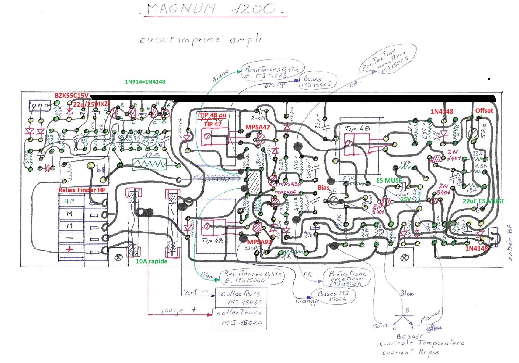 Semi-conducteurs : 12 transistors de puissance Motorola par canal (6x MJ15022 et 6x MJ15023)