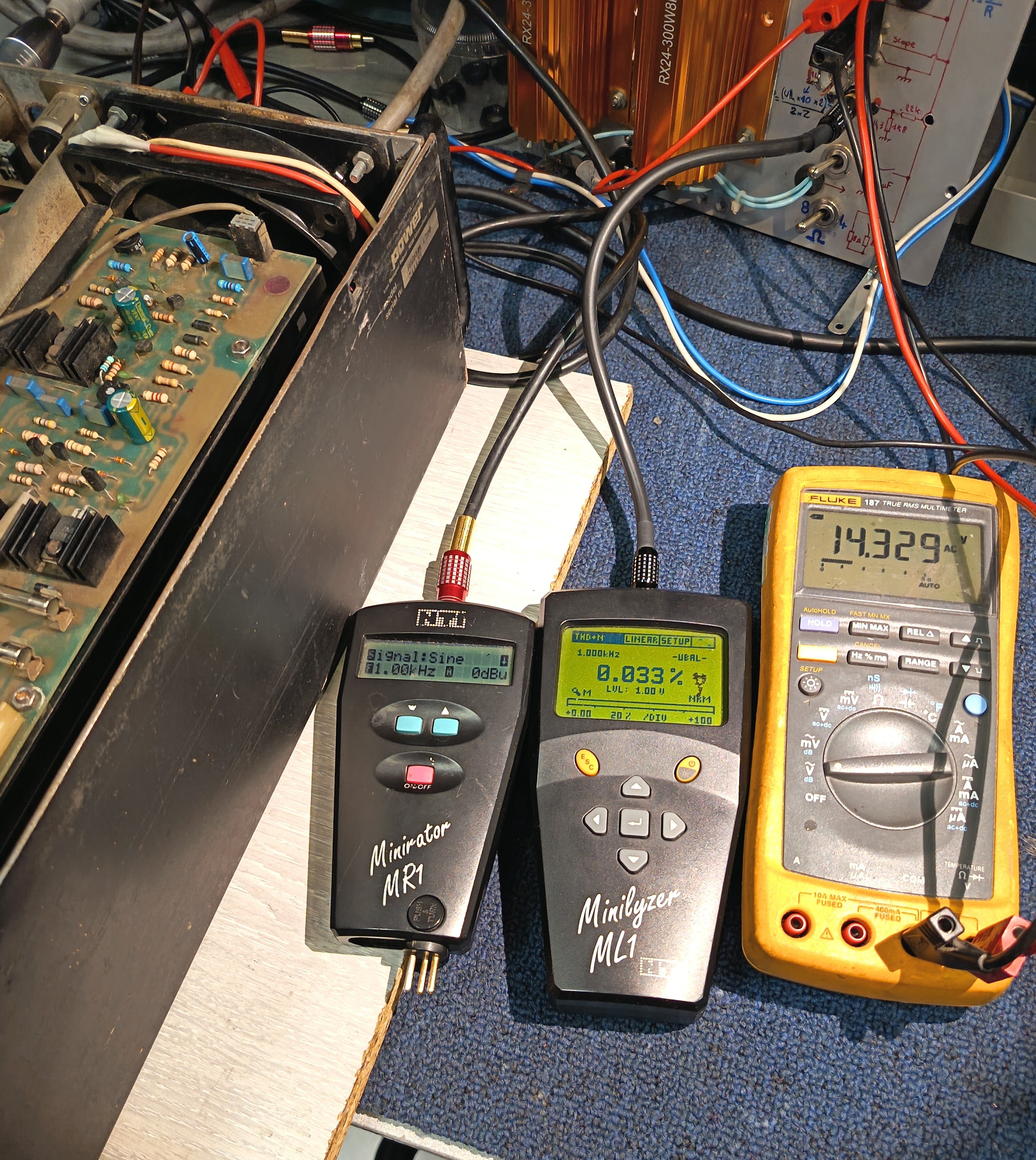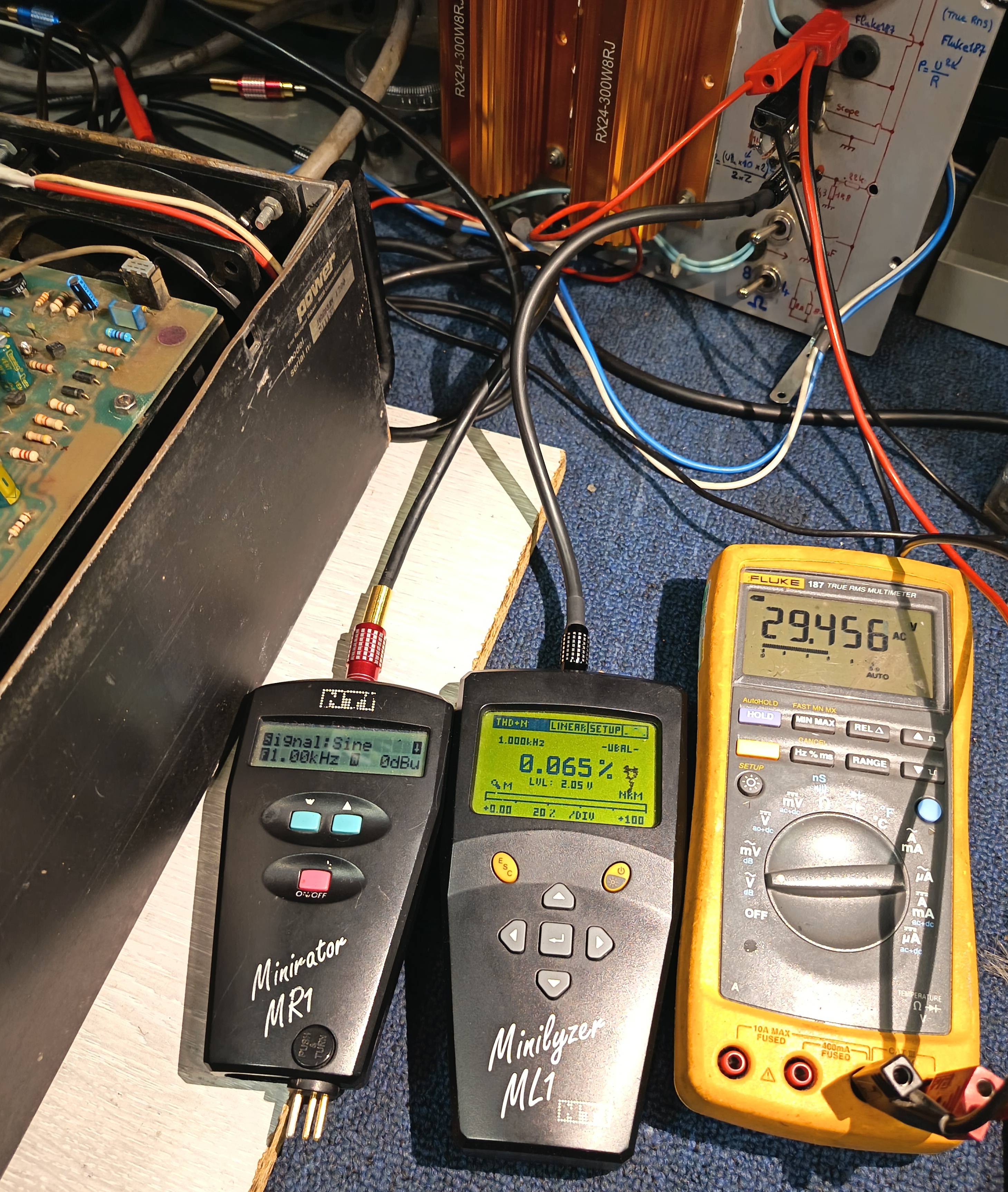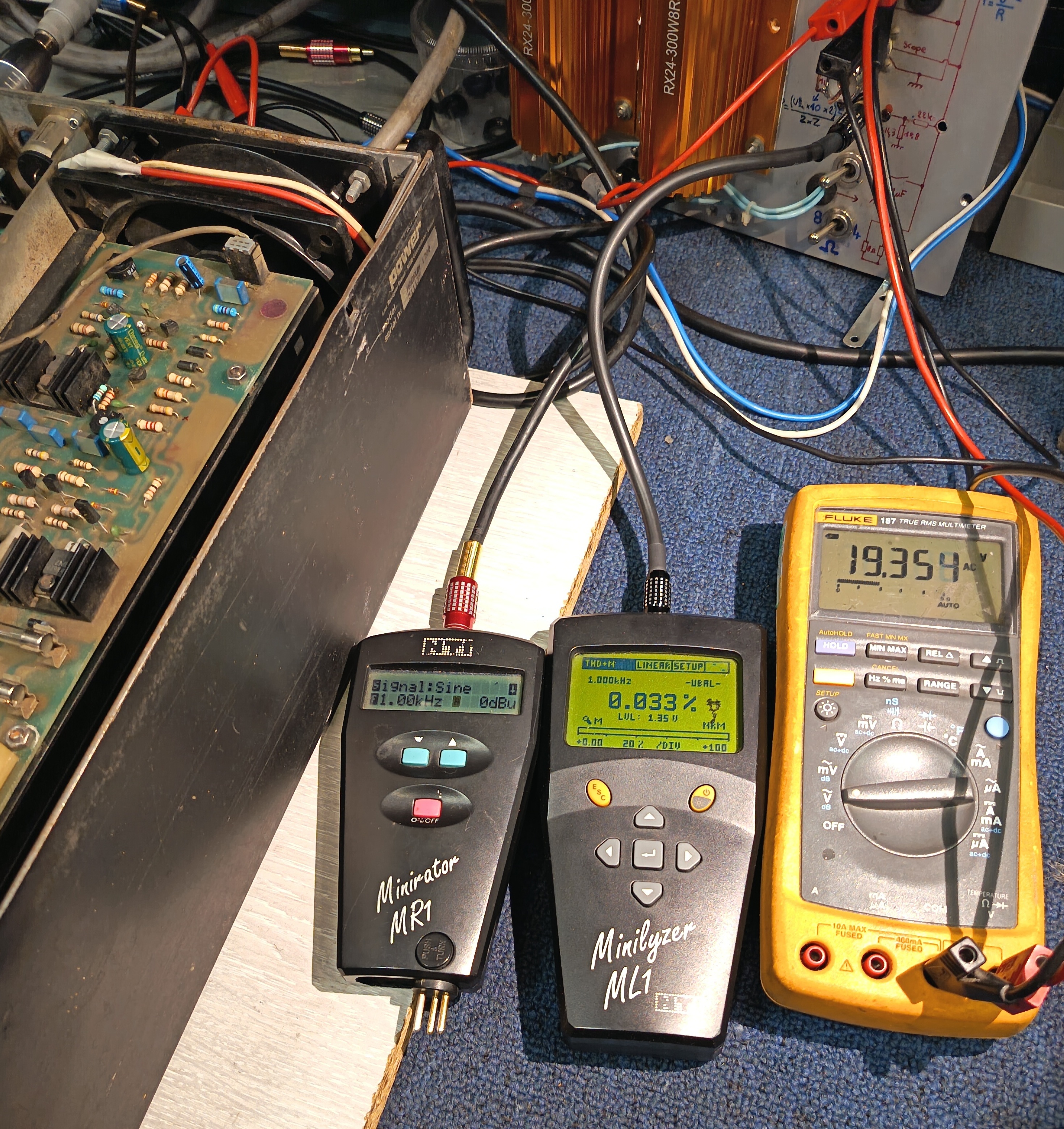 Prises : Entrées BF 4x XLR, 2x Cinch, sorties 2x HP bornier banane 4mm