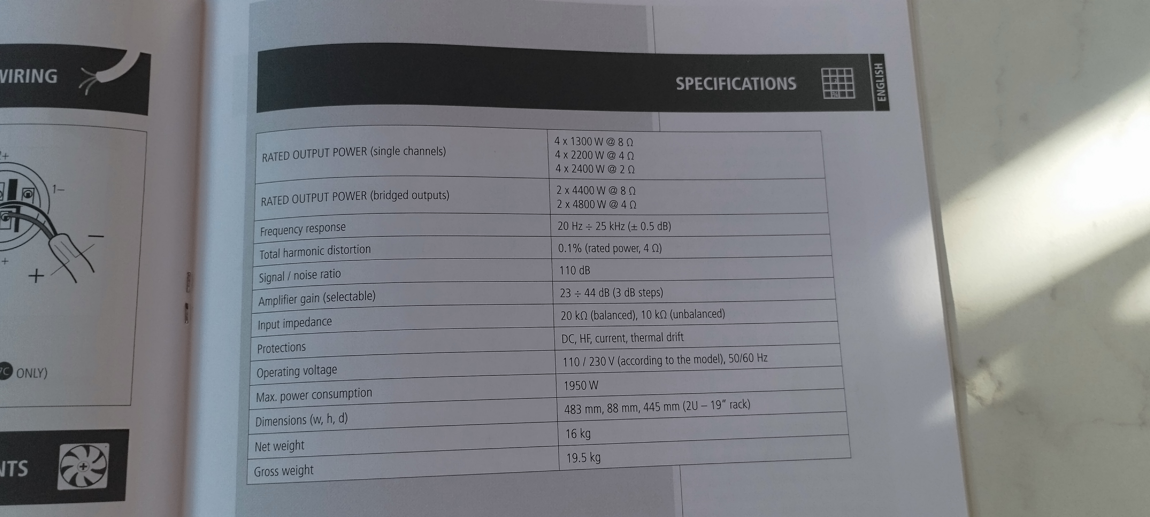 4 x 1300 W / 8 Ohms