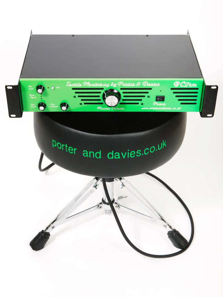 Le BC2rm reprend les mêmes fonctions et offre la même puissance que les versions BC2 antérieures, mais dans un format rackable 19" 2U. Comme les autres versions, il est livré avec le siège équipé d’un transducteur breveté par la marque (modèle à choisir lors de la commande) et utilise la technologie Stealth Monitoring qui permet aux batteurs de ressentir les vibrations générées par la batterie grâce aux techniques Bone Conduction développées par Porter & Davies.