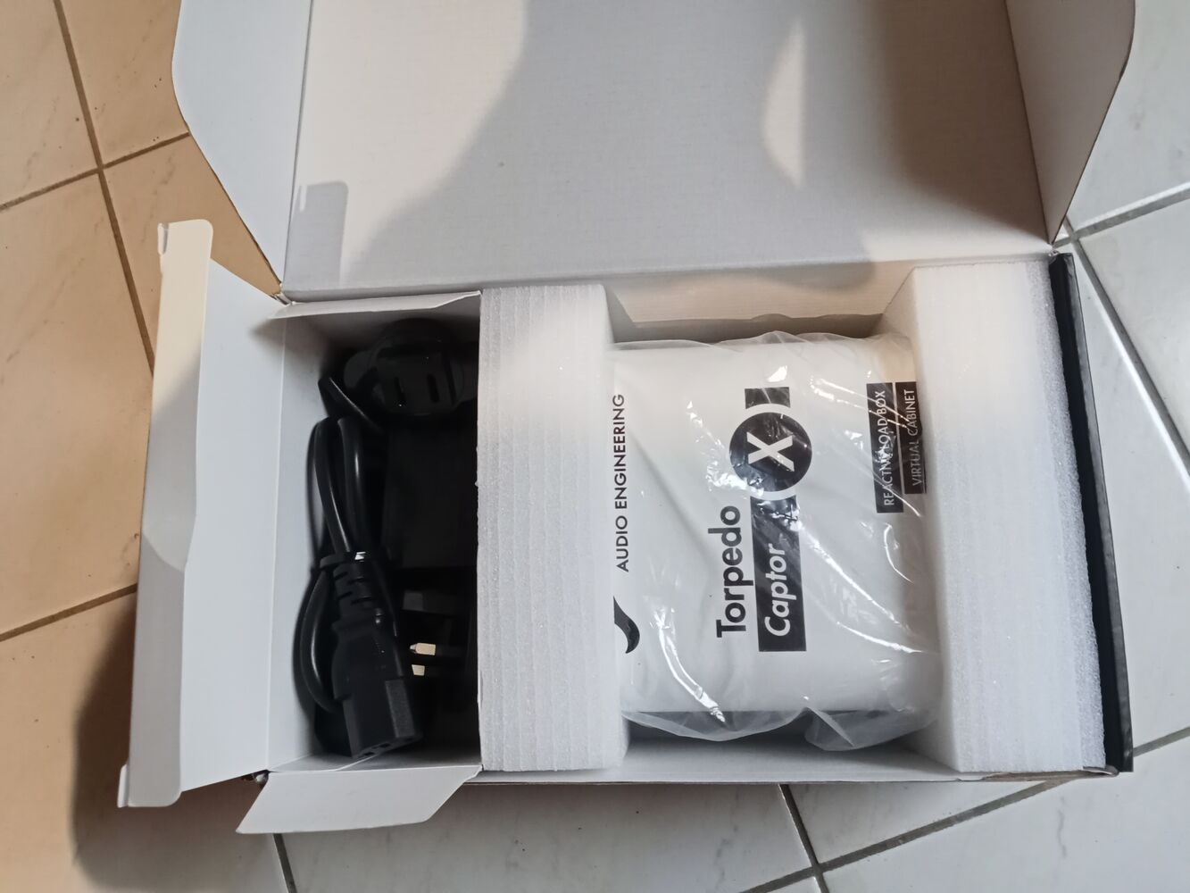 Boite d’origine avec les adaptateurs pour prises de courant, alimentation, fiches techniques.