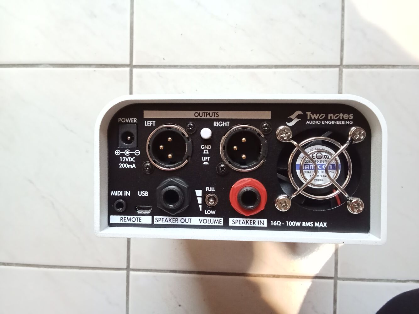 Loadbox compacte (16 Ohm, max. 100 Watt RMS) avec atténuateur intégré: Home (-38 dB), Club (-20 dB), Stadium (0 dB)