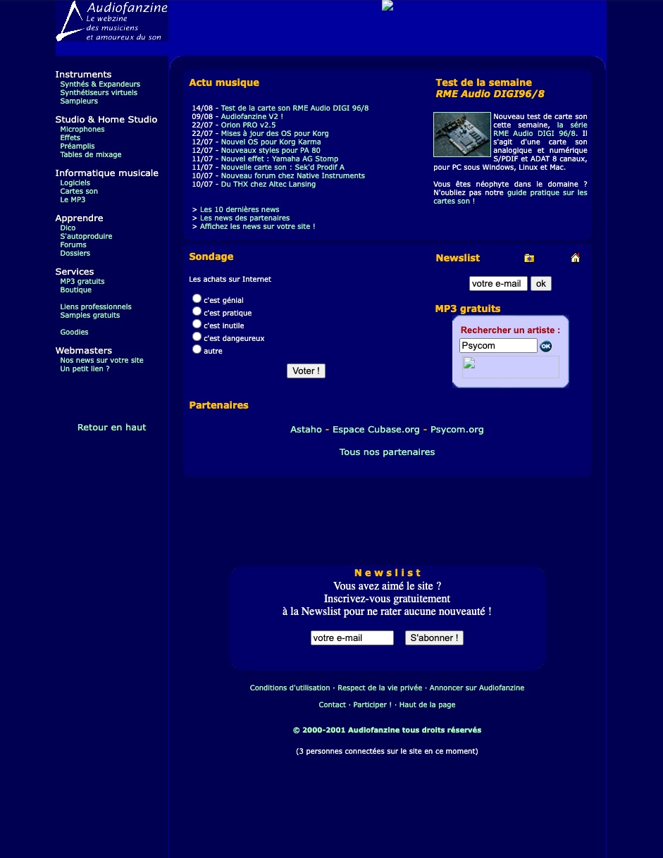 Le site est lancé en 2000 alors qu’Internet est dans la tourmente : après l’enthousiasme délirant de ses débuts, les investisseurs se sont ravisés et pour s’imposer, il faut donc plus que jamais faire ses preuves. Philippe est pourtant convaincu qu’Audiofanzine ne sera pas seulement un hobby mais son métier, une plateforme d’échange pour tous les musiciens qui, animés d’une même passion, cherchent à faire de la musique avec leurs petits moyens, une plateforme qui devra le faire vivre lui, mais aussi d’éventuels employés ou prestataires.