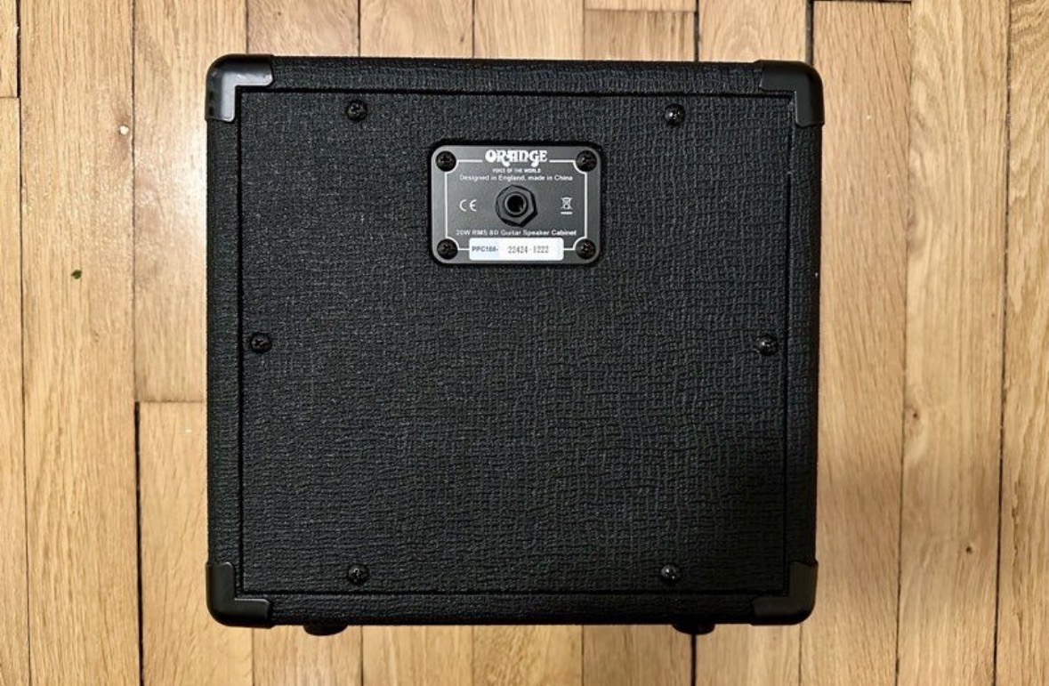 Comme la grande majorité, j'ai acquis ce baffle avec la tête Orange Micro Terror pour une partie ampli hyper compacte ! Il s'agit donc d'un hp 8 pouces d'Orange d'impédance 8 ohms qui, selon le site, a été développé uniquement pour les têtes Terror et Dark. Je confesse que c'est ma première expérience dans le domaine de l'amplification en deux parties et que c'est probablement pas la plus pertinente, mais y'a quand même quelques petites choses à dire malgré tout.