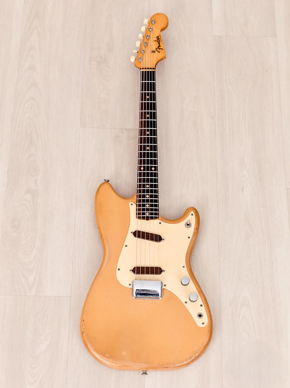 Fender Duo Sonic de 1960, (Pre-CBS) en excellent état. Couleur Desert Sand avec le cache, la case et le câble d'origine.Marque: Fender