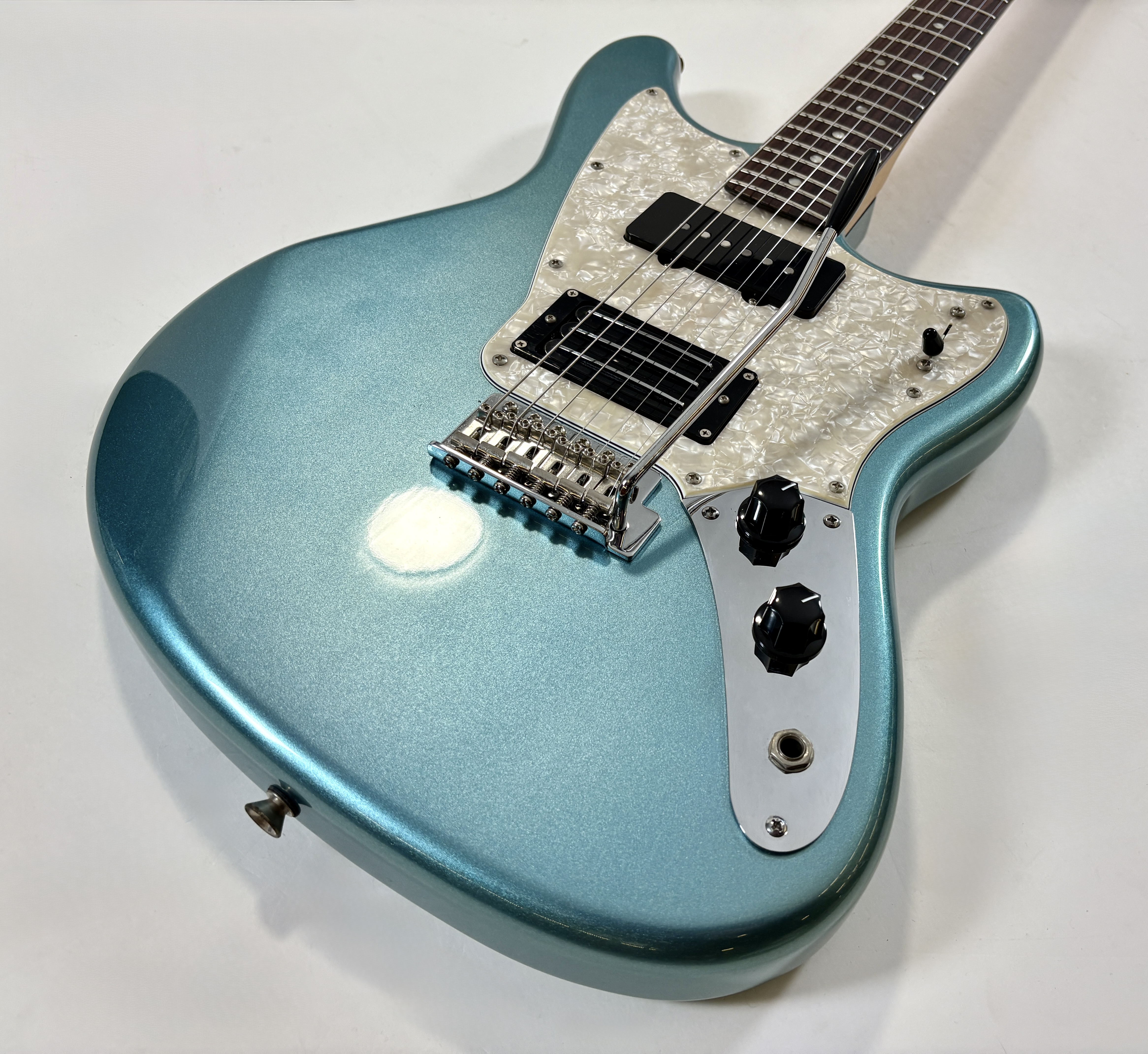 La Marauder est une Fender atypique inspirée d’un prototype des années 60 jamais commercialisé : elle combine un micro manche type Jazzmaster (chaud et rond) et un micro chevalet Triplebucker très polyvalent via un sélecteur 5 positions, offrant des sons allant du simple coil au humbucker plus musclé. Le manche en érable se dote d’une touche en palissandre de 9,5 pouces de radius. Avec son corps en koto, son vibrato type Strat et son look offset rétro-futuriste, elle se distingue par sa grande versatilité mais aussi par un caractère moins “Fender classique”, ce qui en fait aujourd’hui un modèle original et recherché en occasion surtout apprécié par ceux qui veulent sortir des sentiers Stratocaster/Telecaster.Dépôt-vente, achat, vente, reprise, location.