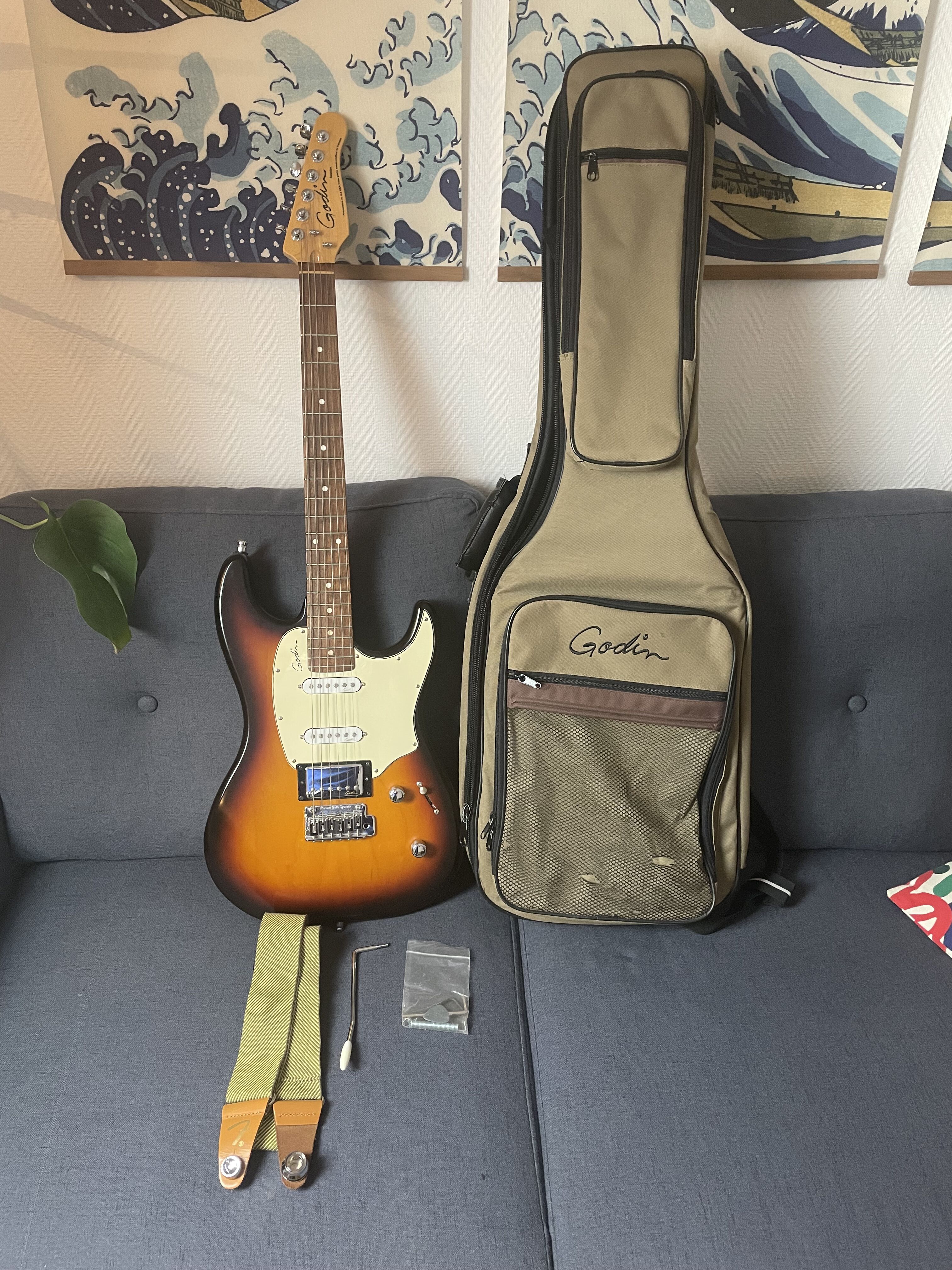 Godin session sunburst HSS (made in Canada) + housse + sangle fender