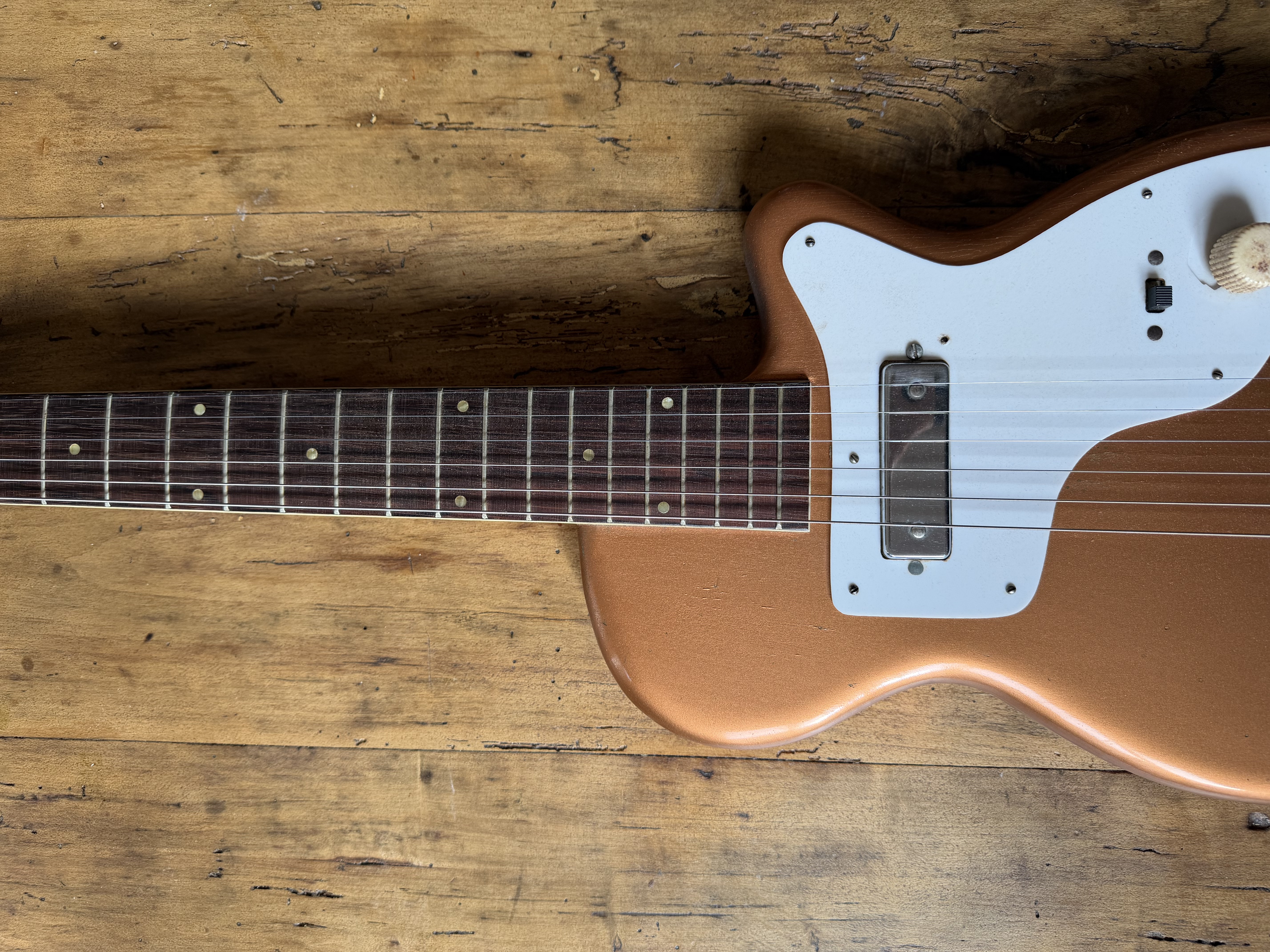 They were very small body guitars with an unusually wide tapered neck which definitely made them an odditiy then, and still does today. Surprisingly, these guitars are very well balanced body/neck wise. The extra wide tapered neck is also really fun to play on once you get used to the style.
