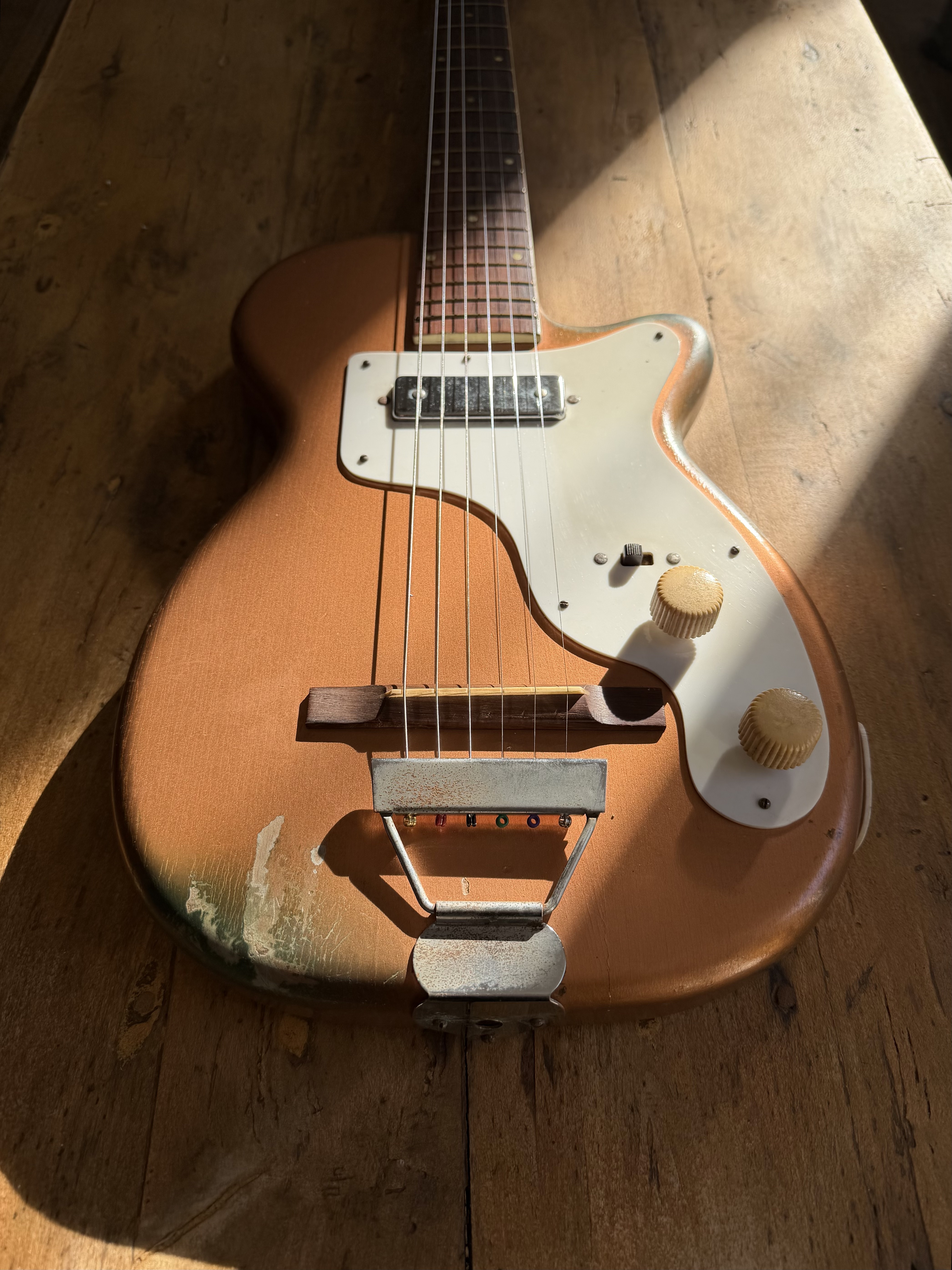Guitare Rare & Vintage Harmony H-44 Stratotone (1952) en très bon état.Caractéristiques :