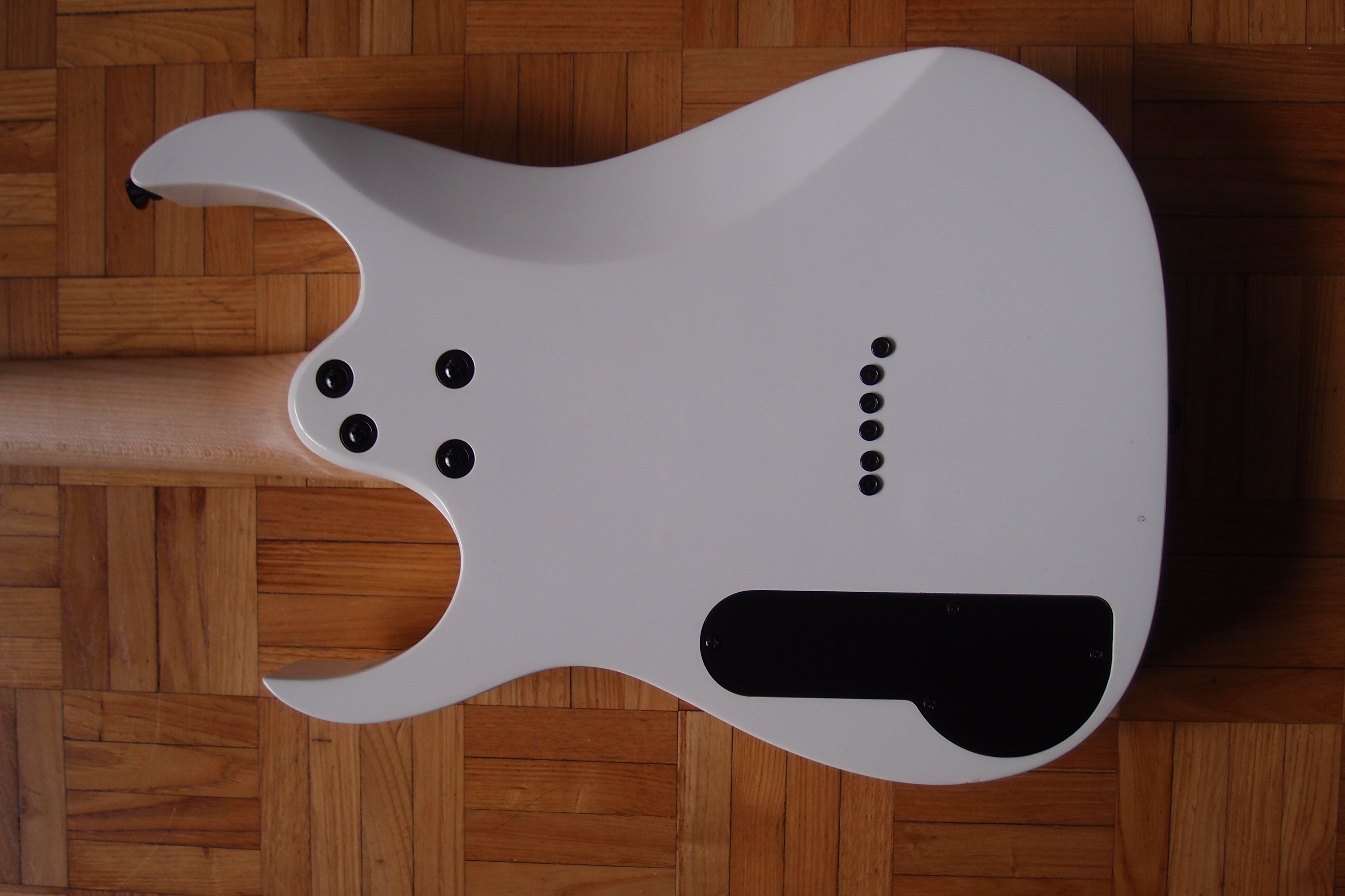 Guitare en bon état avec néanmoins quelques petits "pocs", tout fonctionne parfaitement. Actuellement montée en 12-60 pour un accordage drop C#.