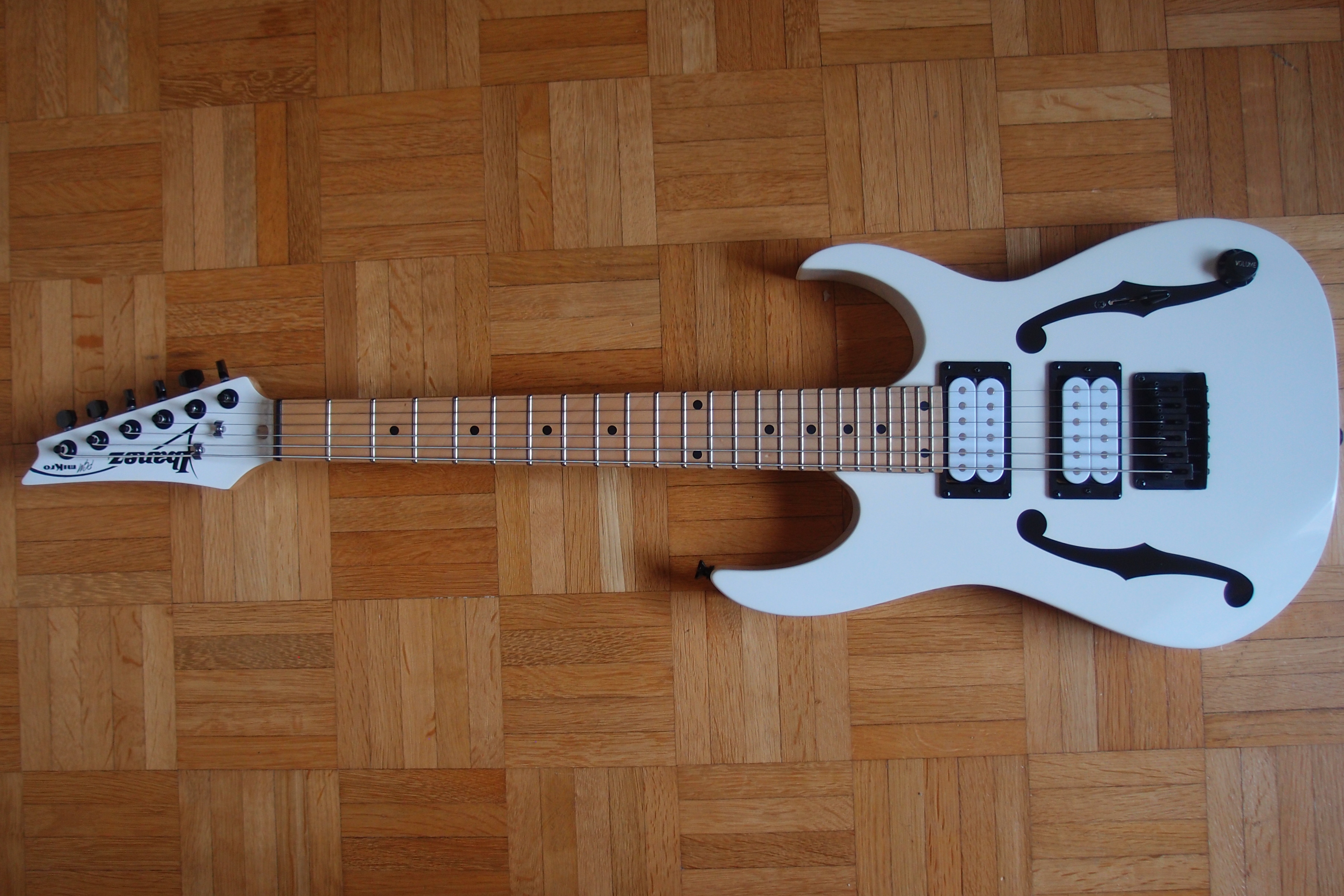 Je vends mon Ibanez PGMM-31, à savoir le modèle signature Paul Gilbert au format "Mikro" : c'est une guitare (ultra) short scale avec un diapason de 22.2" (564mm), idéale pour enfants, ados et adultes ayant des problèmes de dos (c'était mon cas) en raison de sa légèreté (2.3 kgs).- corps en peuplier
