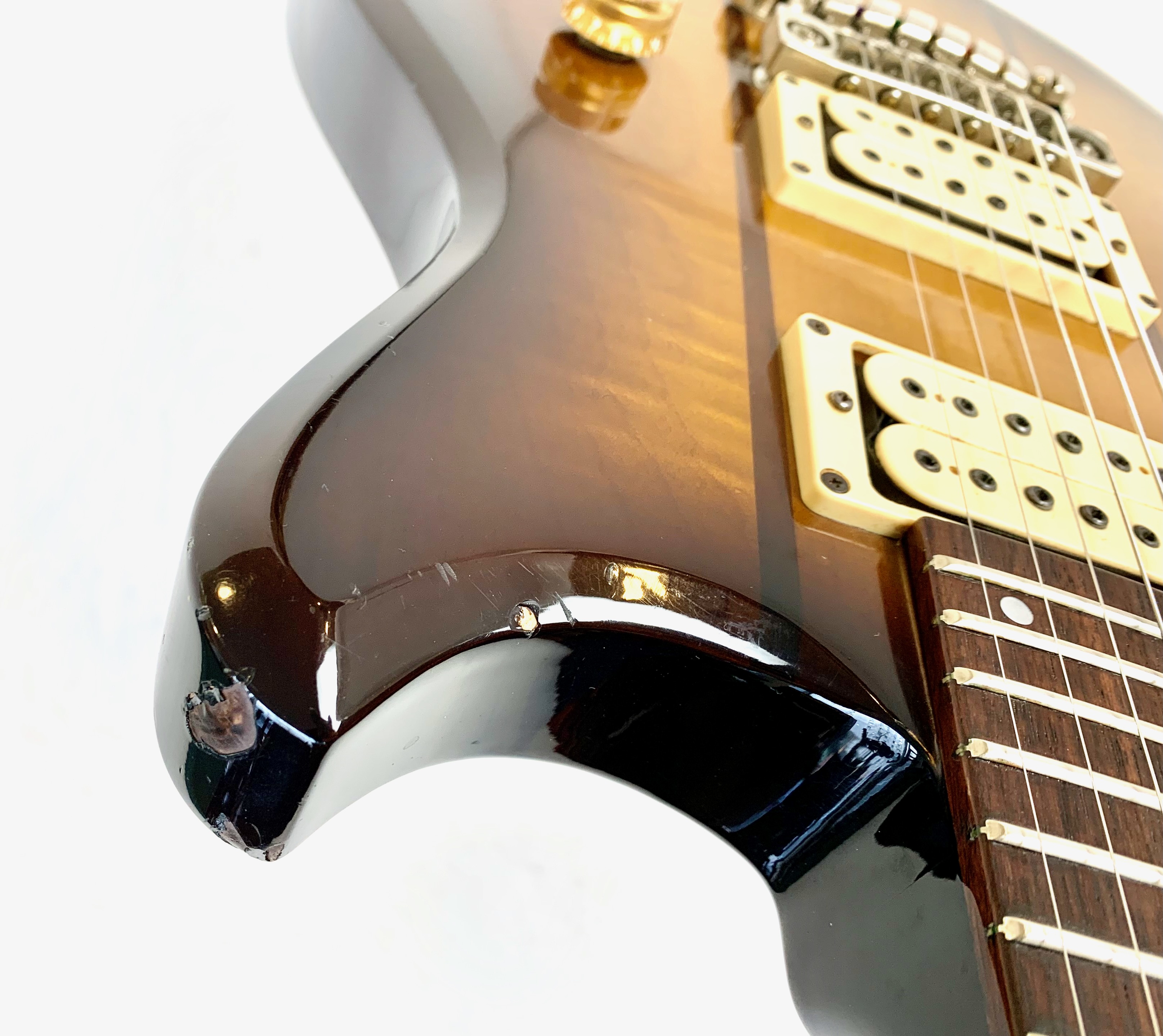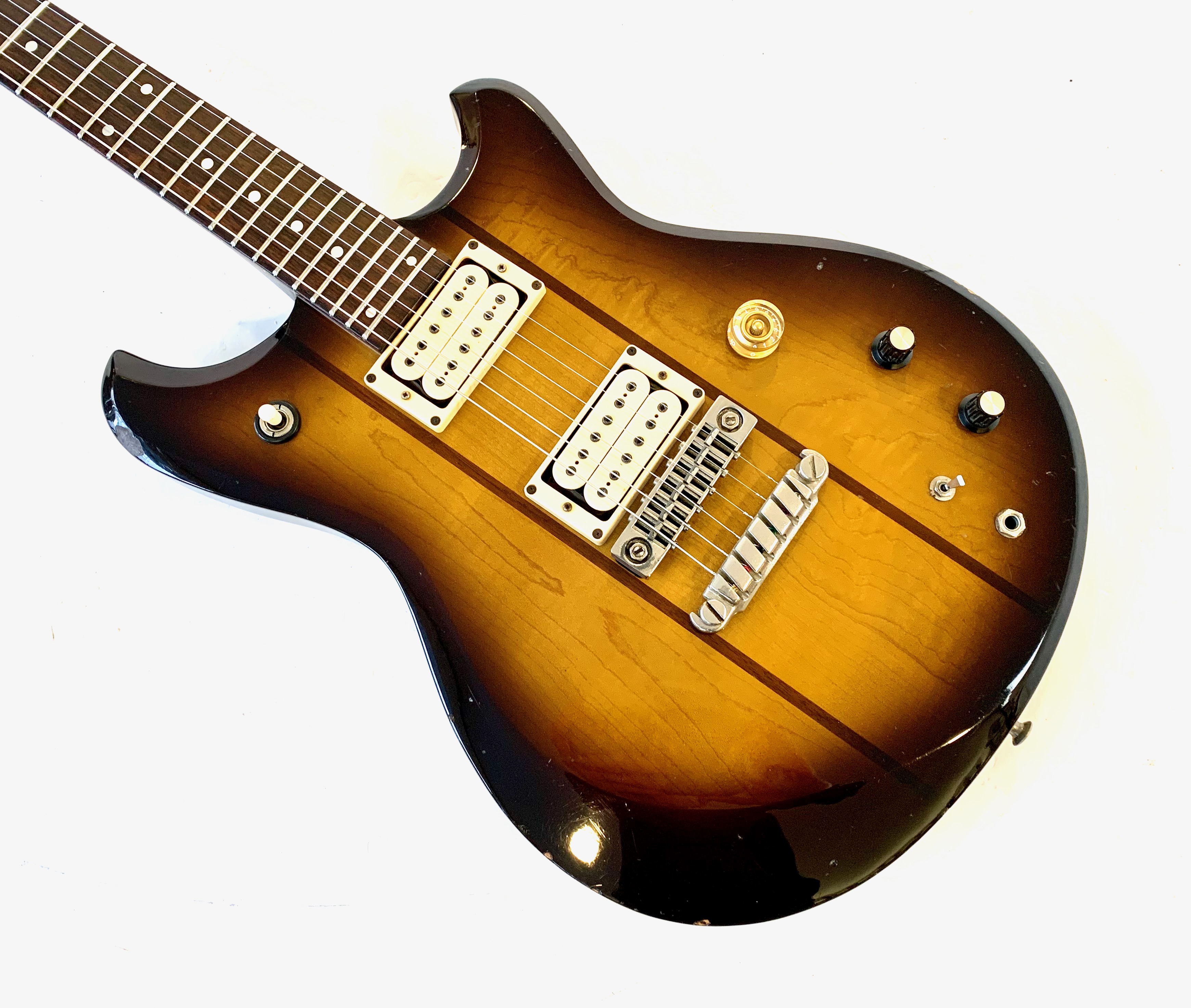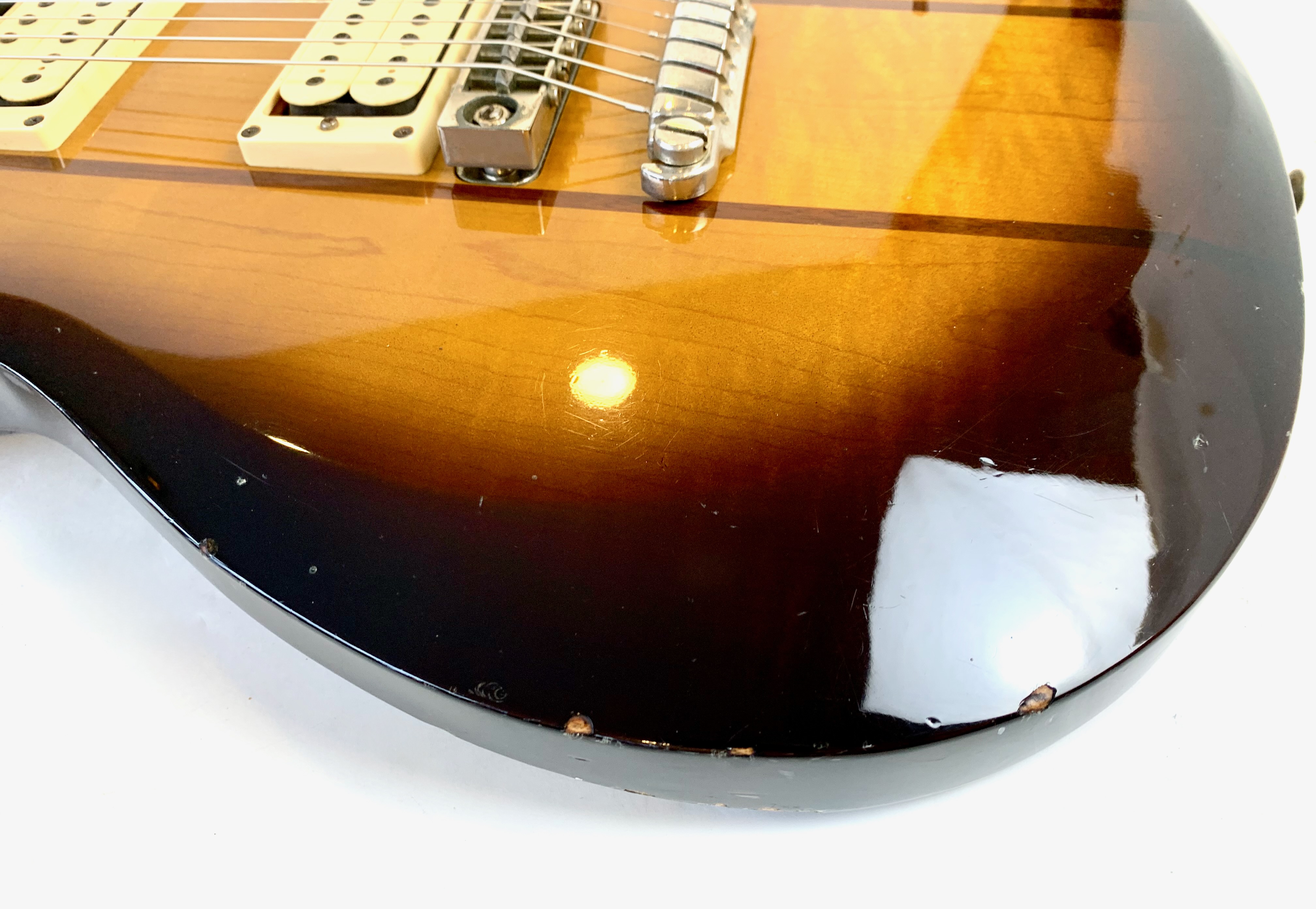 La ST200 est bien sûr une belle Made in Japan ! Le corps est fait d'érable en trois parties avec deux tranches de noyer. Le manche en érable également trois pièces et une touche en palissandre. En configuration HH, elle offre une paire de humbuckers accouplée à un électronique active. Comme d’habitude on retrouve la qualité de lutherie et l’assemblage sans faille typiquement nippons. Vendue en étui rigide.Location, achat, vente, reprise, dépôt-vente.