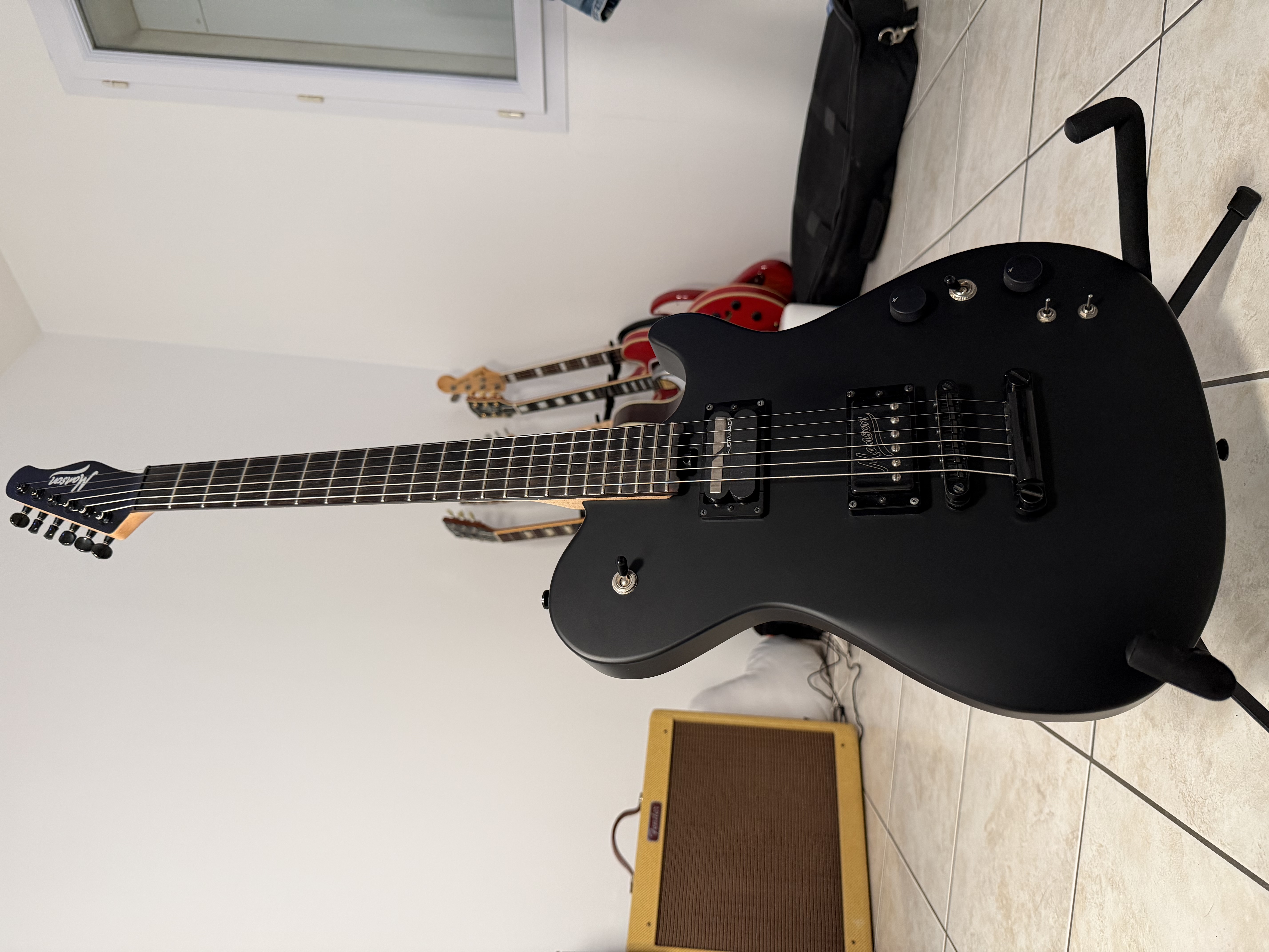 Guitare en très bon état, achetée en 2021.Sustainiac inclus, fonctionne parfaitement.