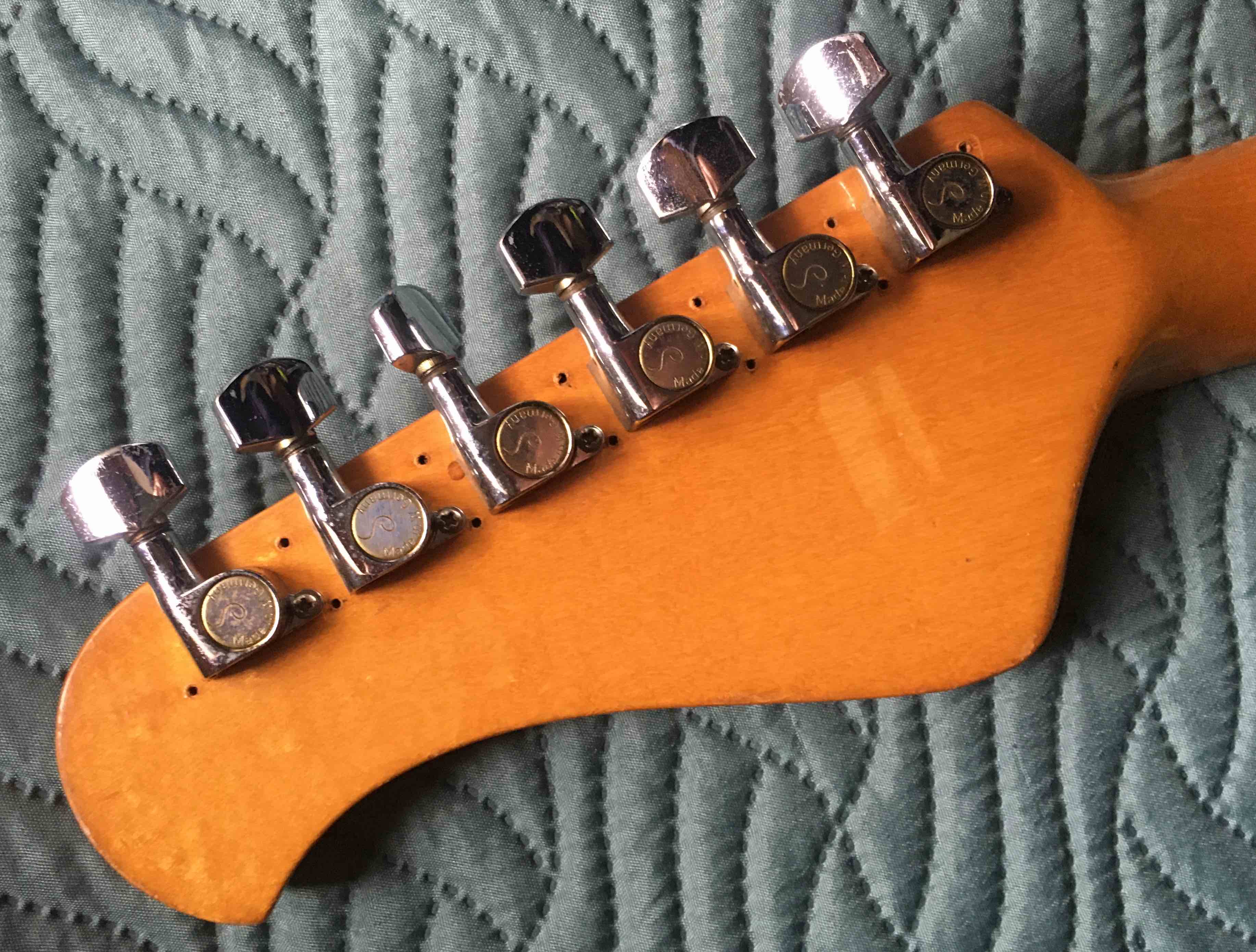 Cette guitare est en excellent état, surtout compte tenu de son âge. Il a été bien joué et conservé avec amour et soin. La finition présente quelques légères usures de joueur, mais rien de grave. Les tuners ont été remplacés par des Schallers ; à part ça, tout est original.