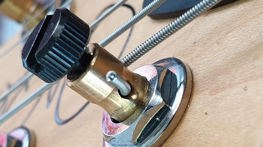 On voit le détail de vis 6 pans dans le vibrato pour fixer la tige