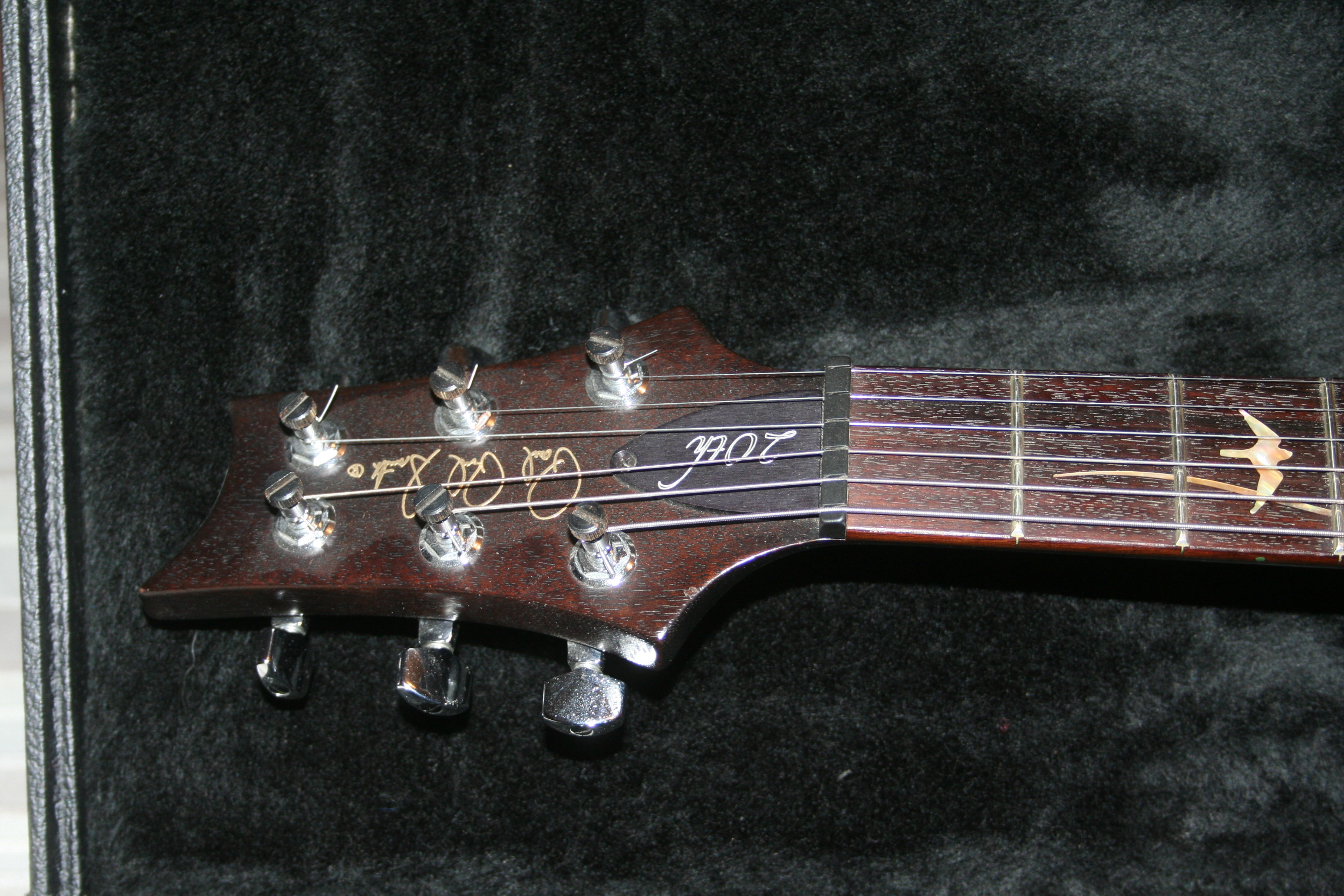 Je possede la PRS standard 24 cases 20eme anniversaire couleur mahogany (bois naturel) avec Birds...