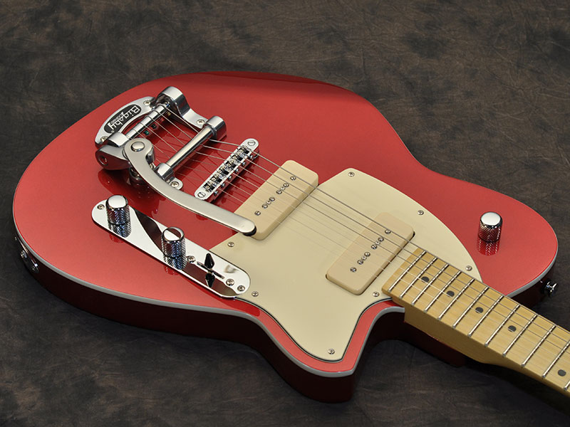 C’est donc la Charger 290 qui a été élue cette année. La guitare est produite en petites quantités, très exactement 14 exemplaires seront disponibles dans chacune des trois finitions Alpine Green, Metallic Red et Lakeshore Gold. La guitare est livrée avec une sangle Souldier aux couleurs coordonnées à la finition de l’instrument, avec le logo de la marque.